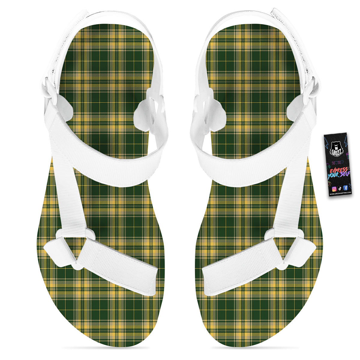 Stewart Tartan Yellow And Green Print White Open Toe Sandals