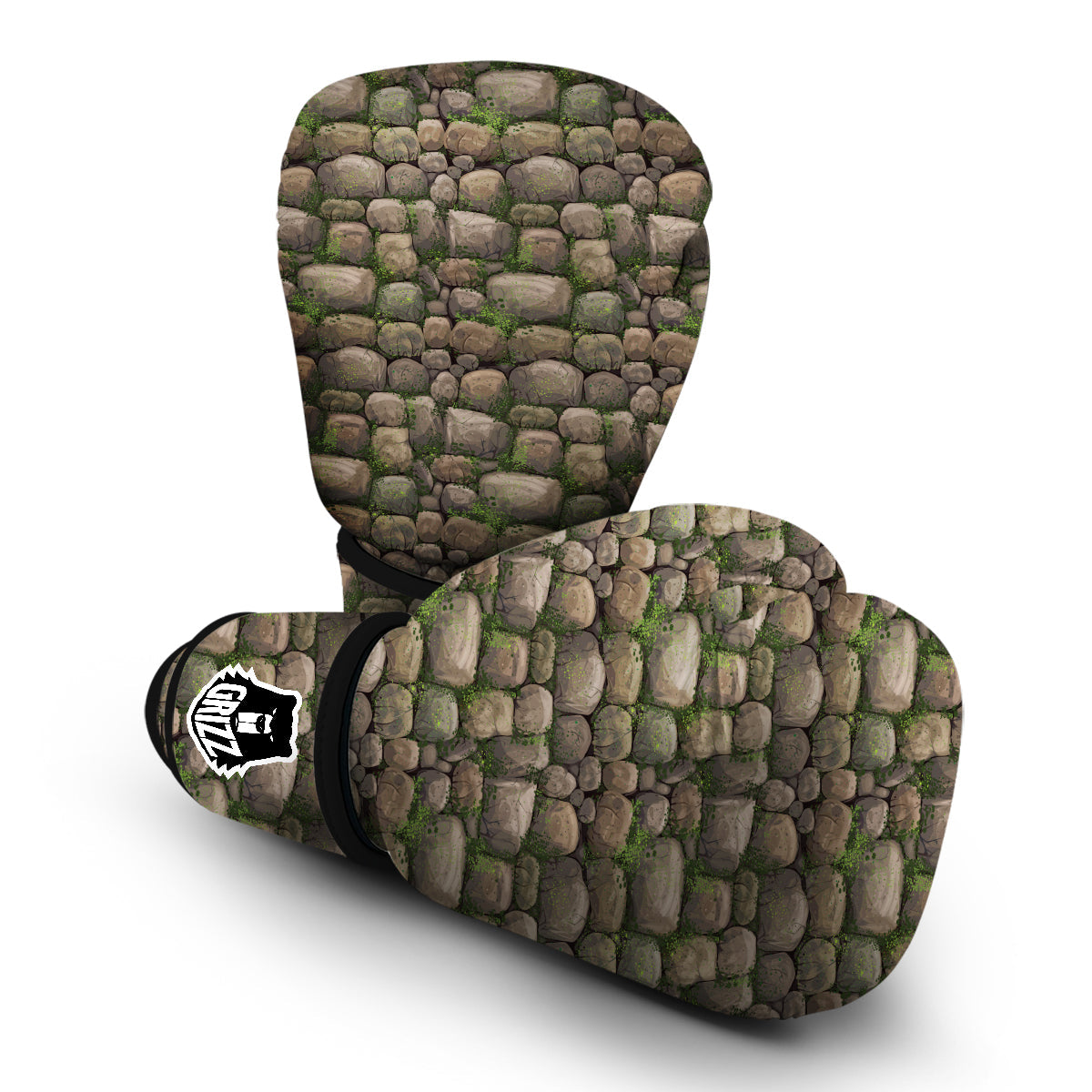 Stone Texture And Moss Print Pattern Boxing Gloves
