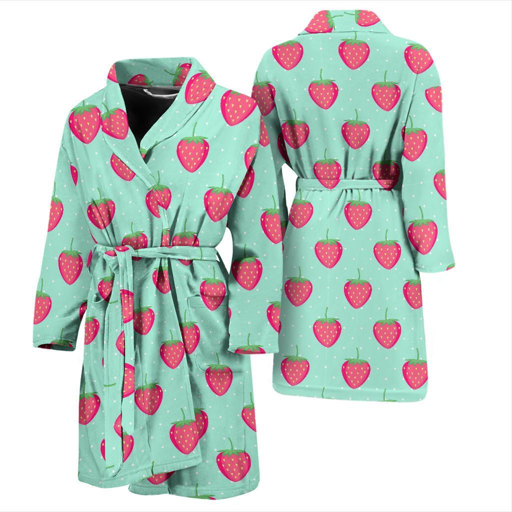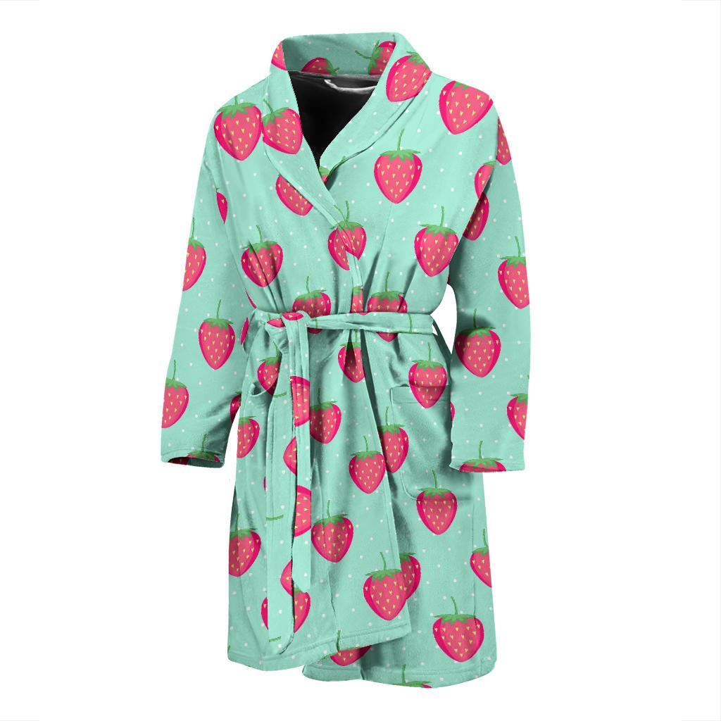 Strawberry Print Pattern Men Long Robe