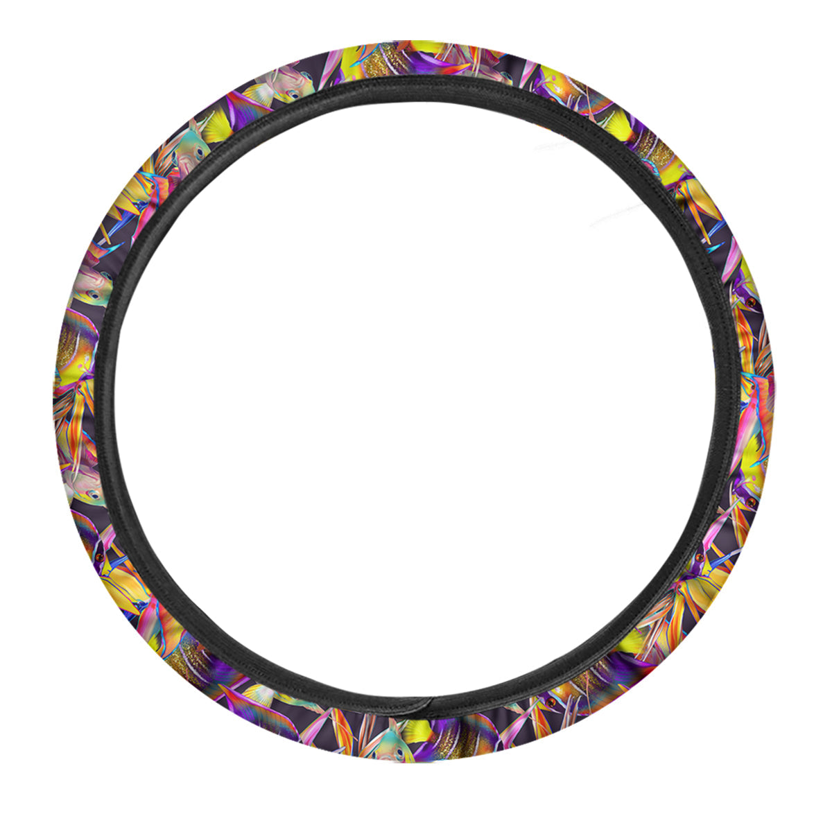 Strelitzia and Fish Tropical Exotic Print Pattern Car Steering Wheel Cover
