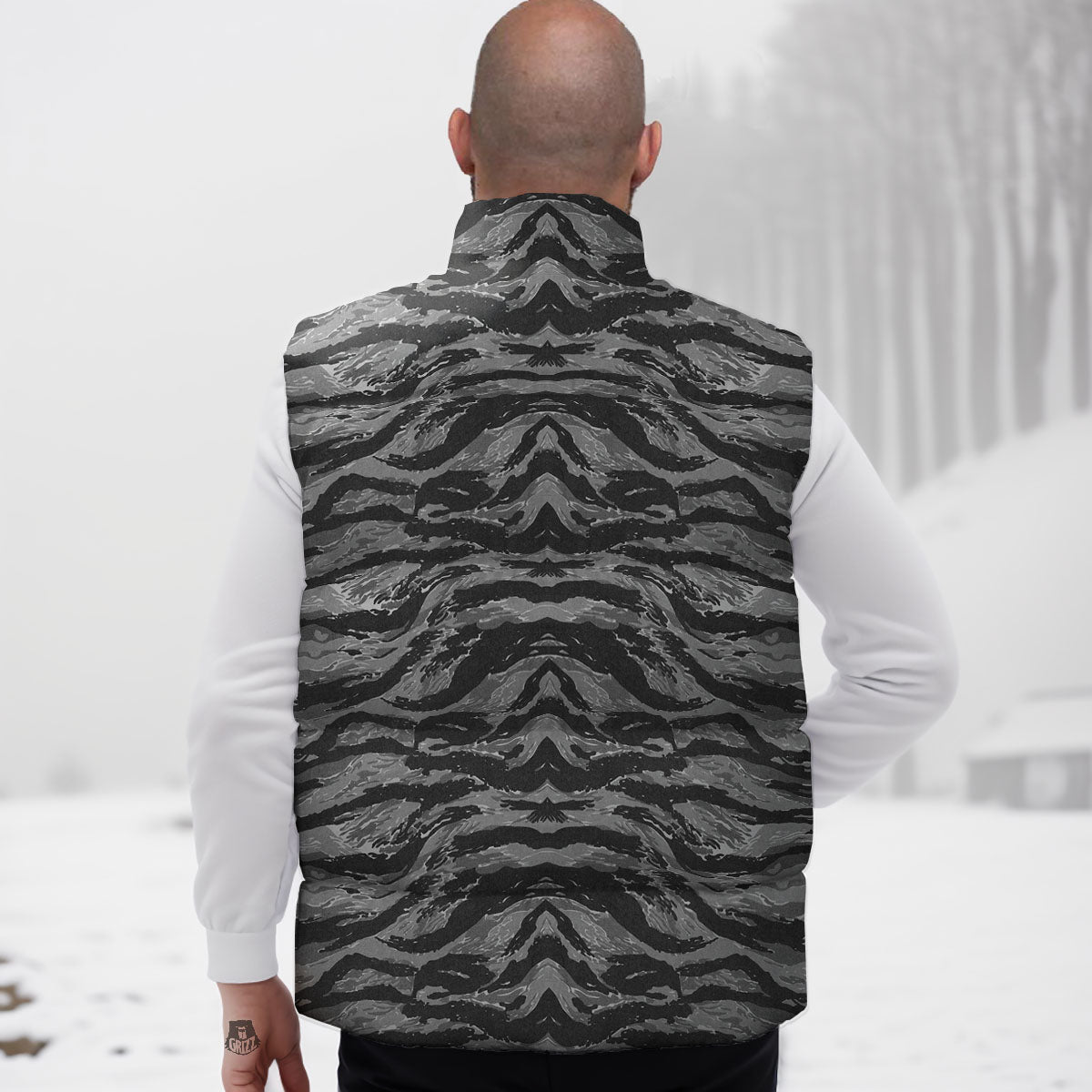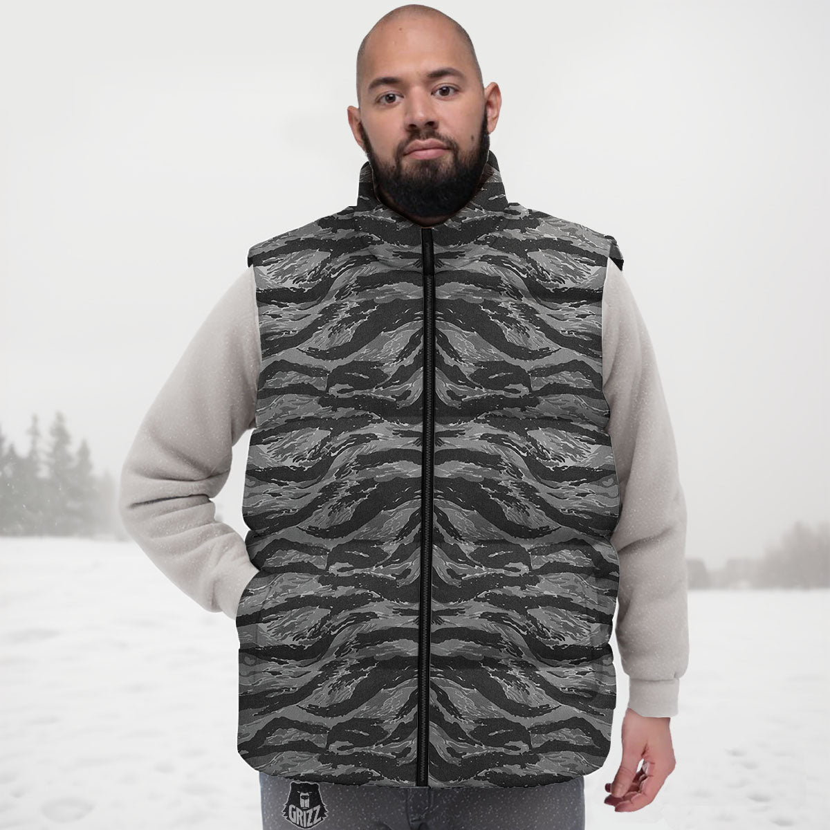 Looking for a unique Down Vest? Check out our Stripe Camouflage Grey Tiger Print Down Vest at Grizzshopping. Our down vest are handcrafted to the highest quality standards that custom made for you