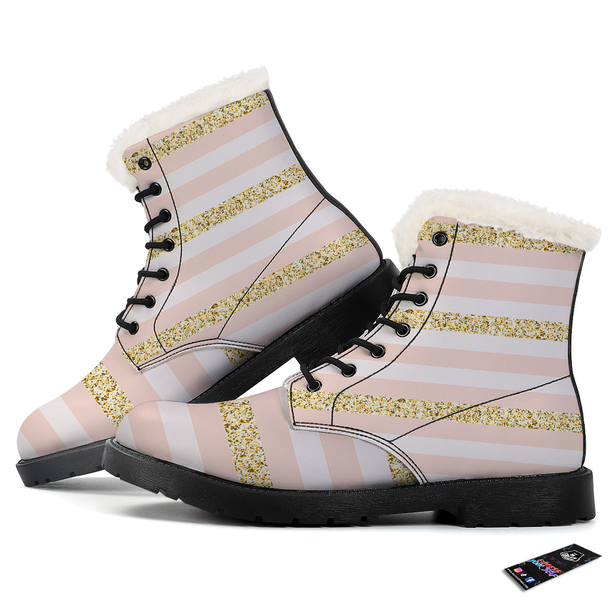 Looking for a unique boot? Check out our Stripe Glitter Gold Print Pattern Winter Boots at Grizzshopping. Our boot are handcrafted to the highest quality standards that custom made for you