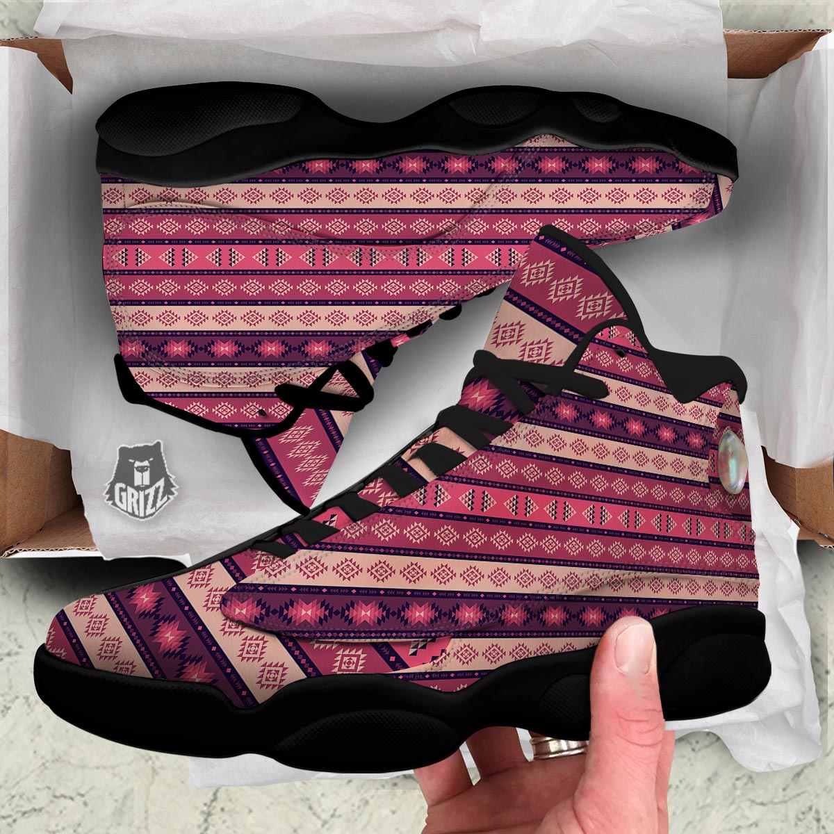 Stripe Southwestern Print Pattern Black Basketball Shoes