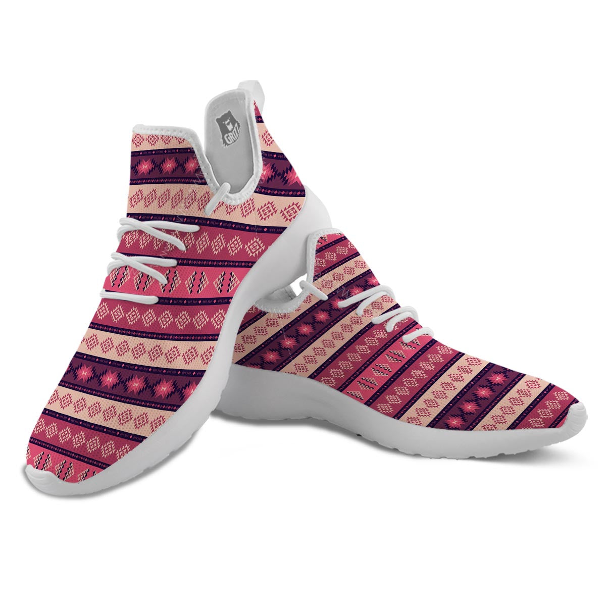 Stripe Southwestern Print Pattern White Athletic Shoes