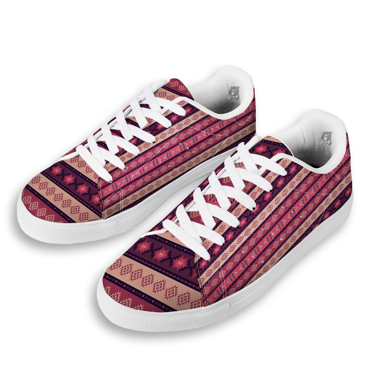 Stripe Southwestern Print Pattern White Low Top Sneakers