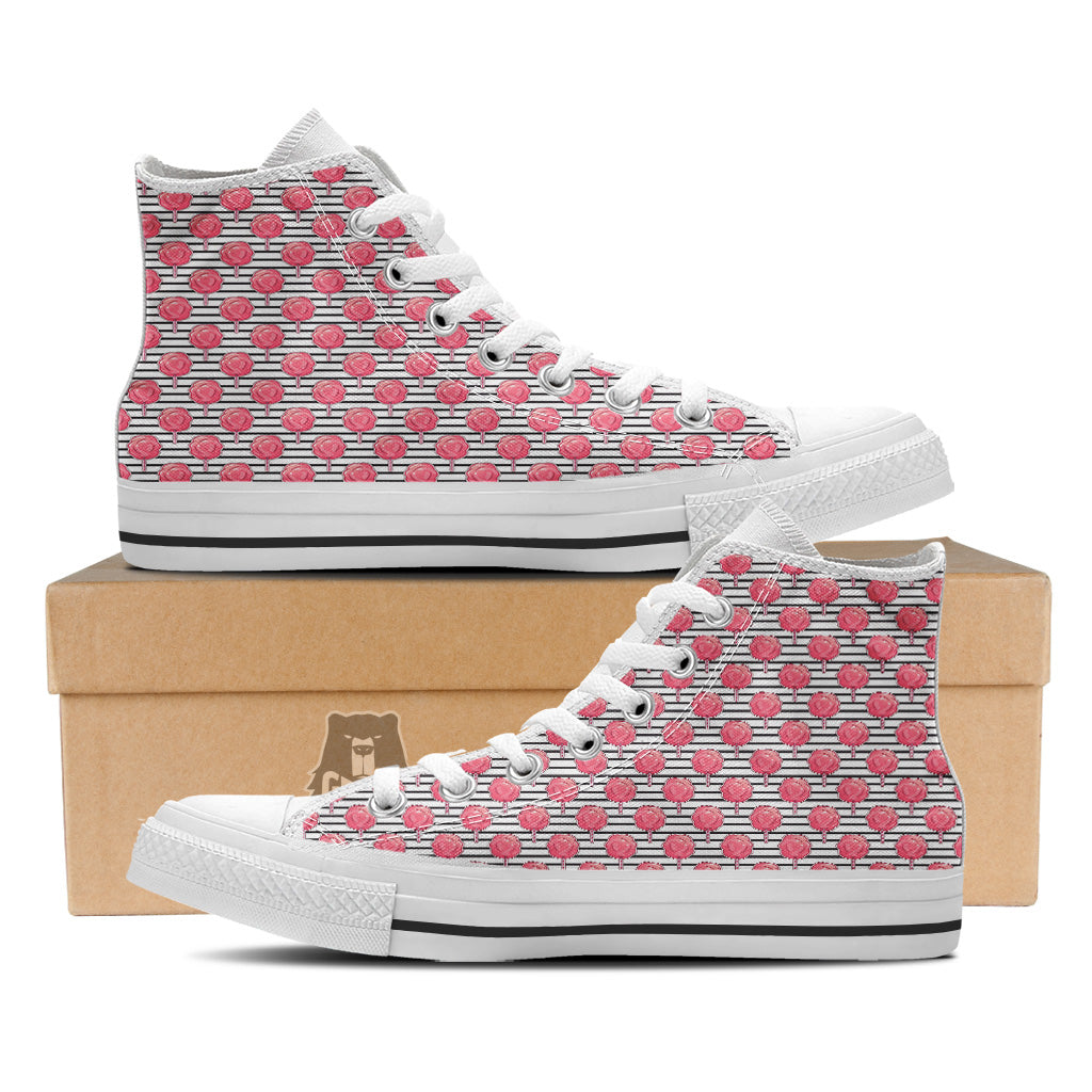 Striped Cotton Candy Print Pattern White High Top Shoes