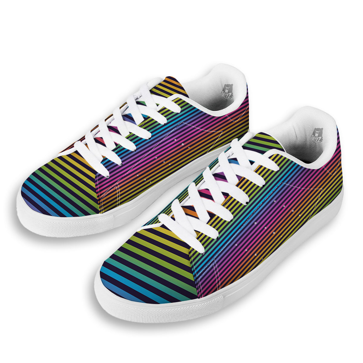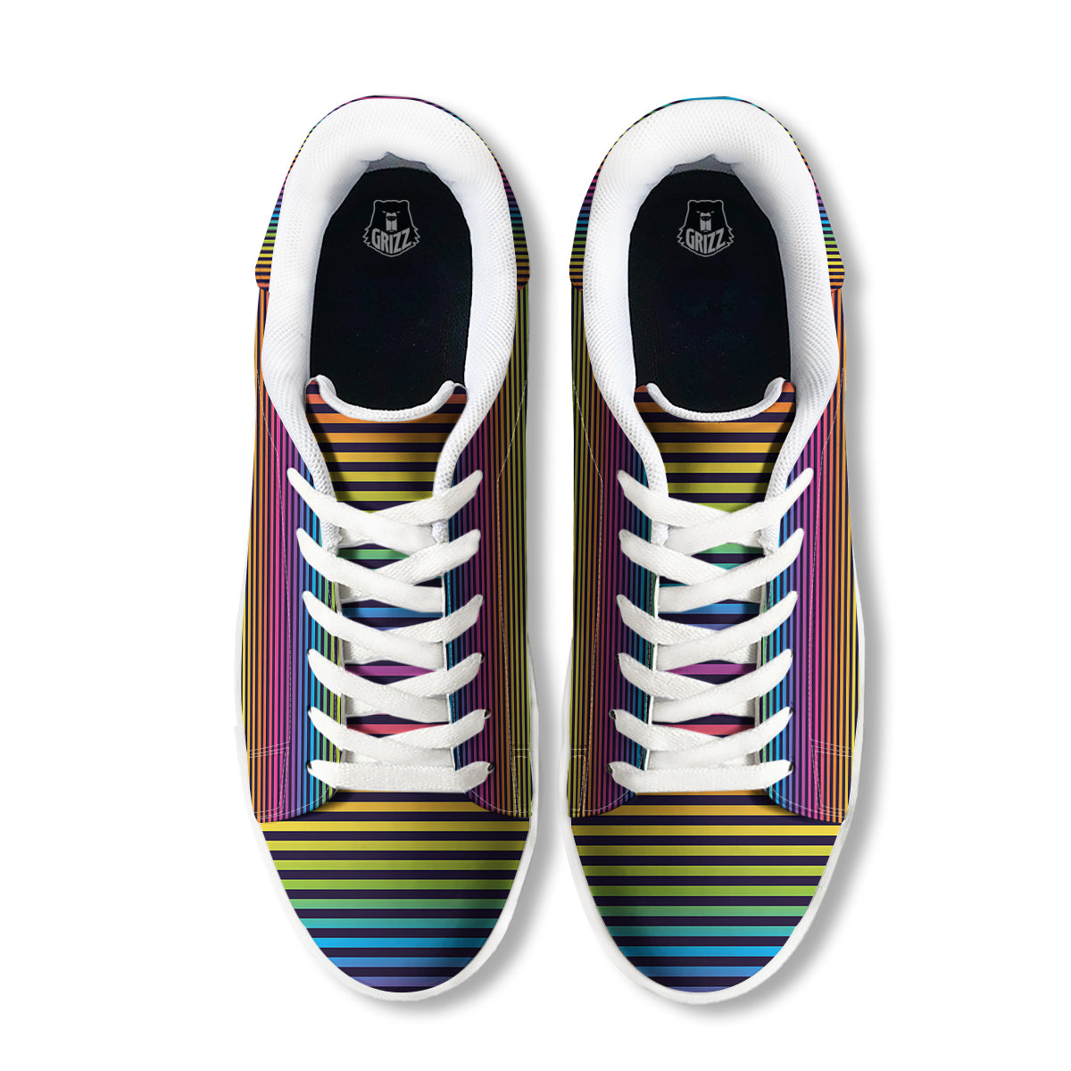 Looking for a unique low top shoes? Check out our Striped Neon Rainbow Print White Low Top Sneakers at Grizzshopping. Our low top sneakers are handcrafted to the highest quality standards that custom made for you