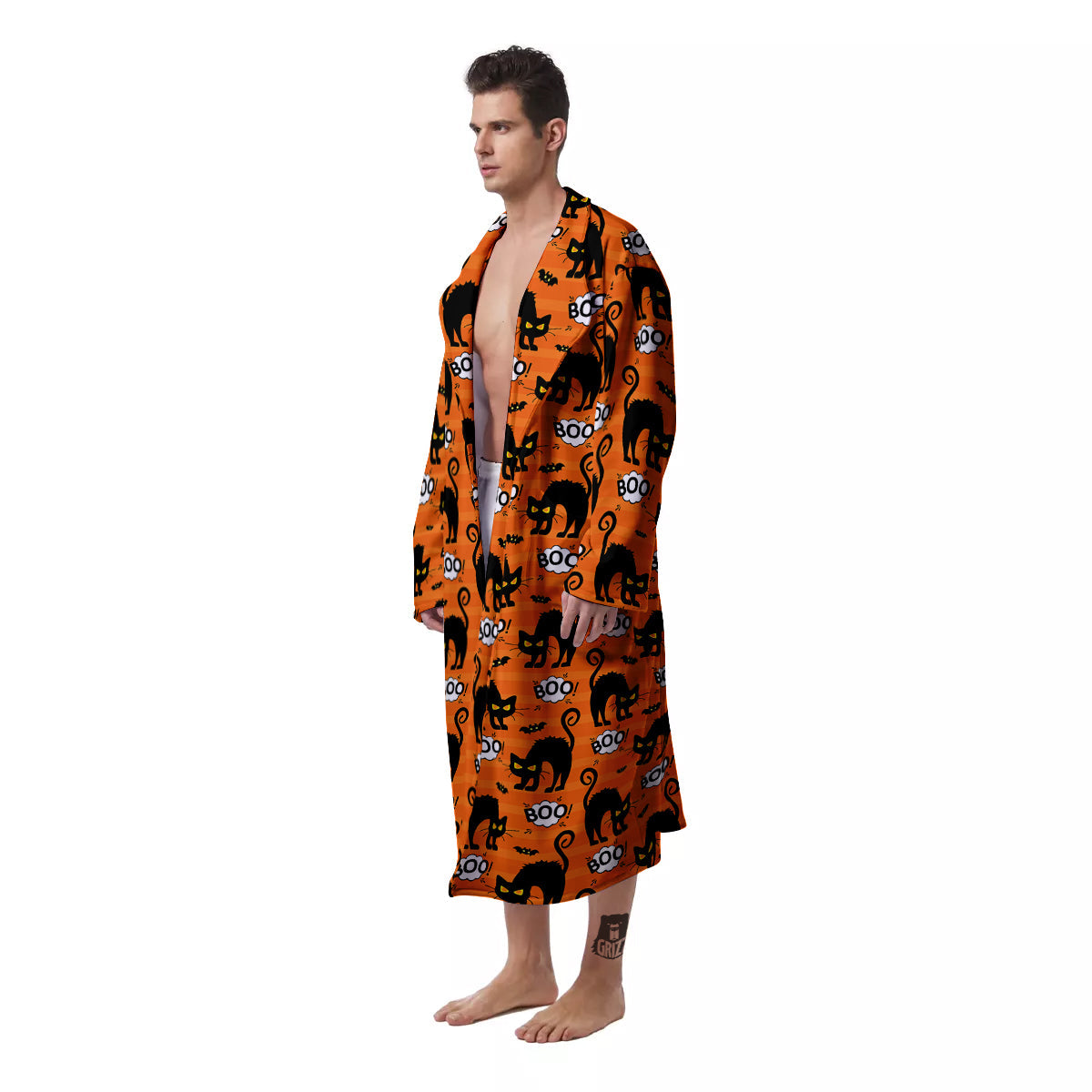 Striped Orange Black Cat Angry Print Pattern Men's Robe