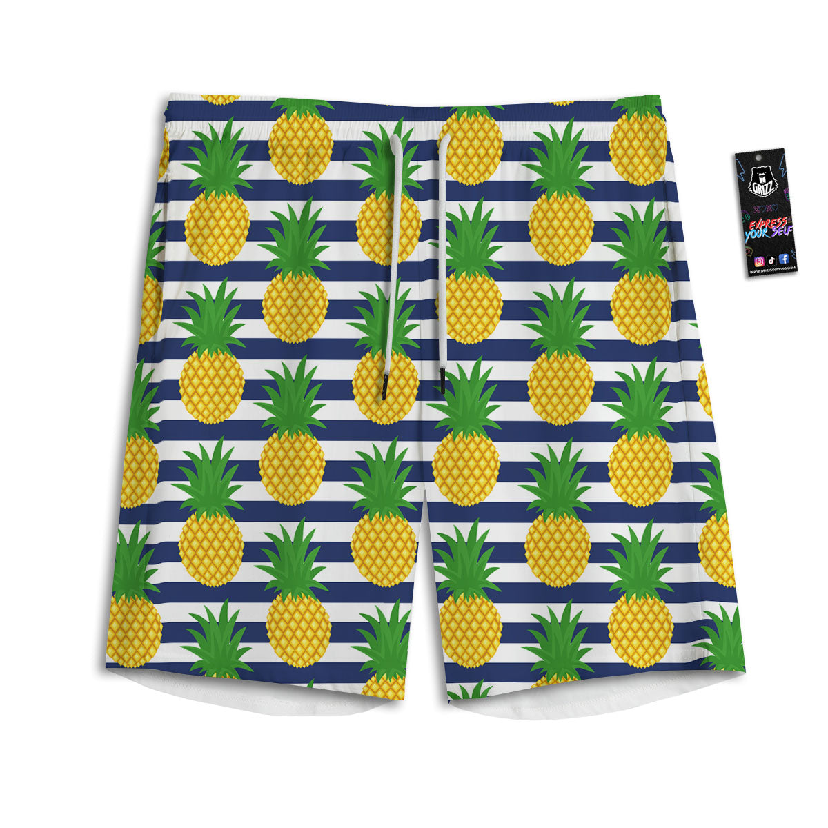 Striped Pineapple Print Pattern Men's Athletic Shorts
