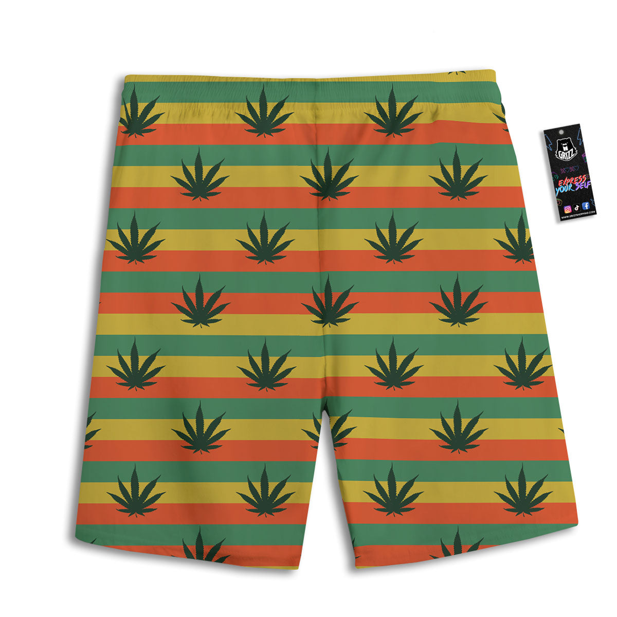 Striped Rasta Print Pattern Men's Athletic Shorts