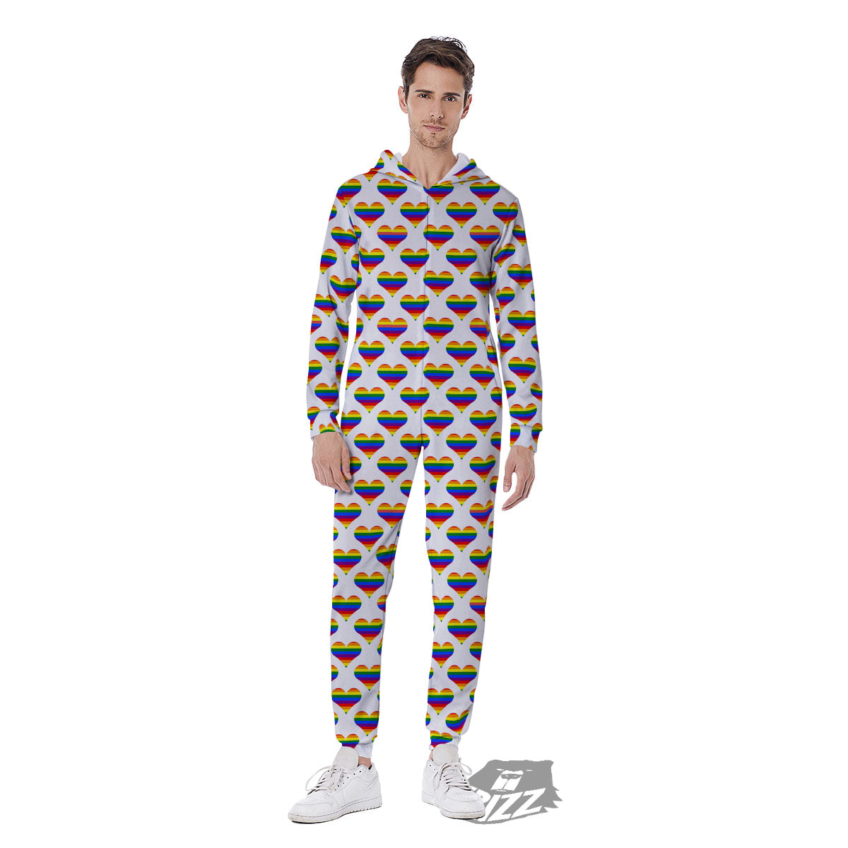 Looking for a unique Jumpsuit? Check out our Striped White Heart On LGBT Pride Print Pattern Men's Jumpsuit at Grizzshopping. Our down Jumpsuit are handcrafted to the highest quality standards that custom made for you