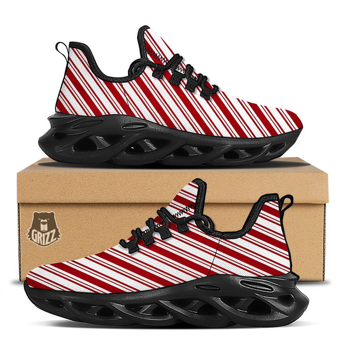Stripes Xmas Candy Cane Print Pattern Black Running Shoes