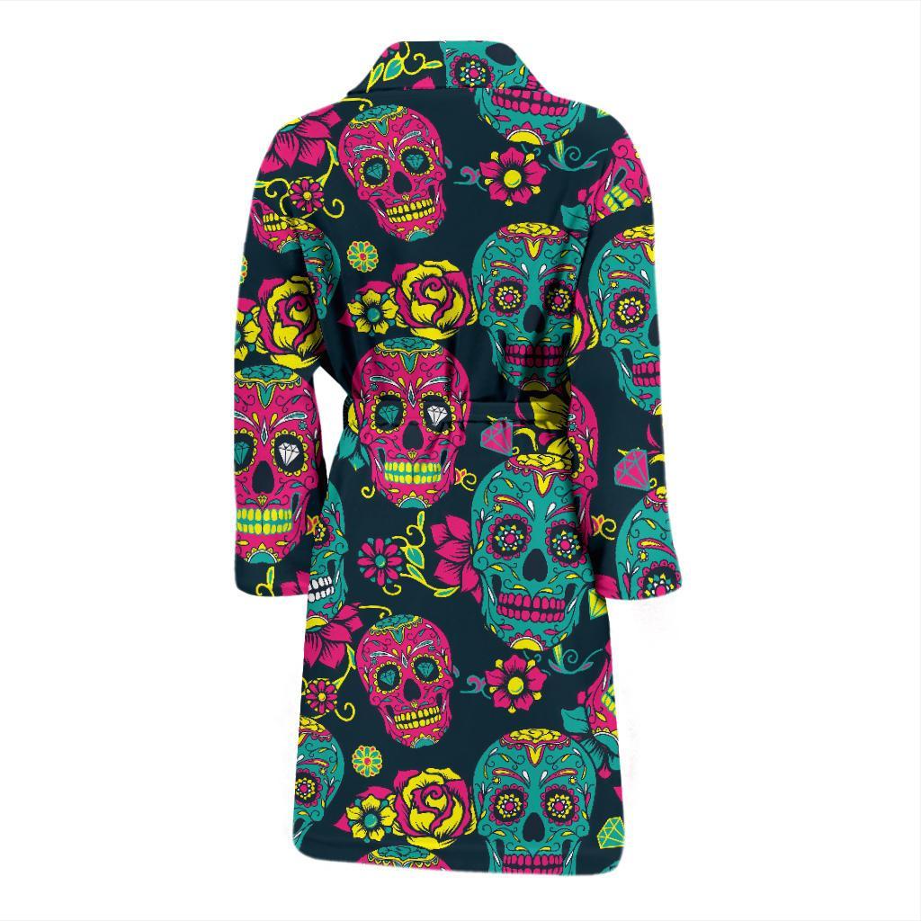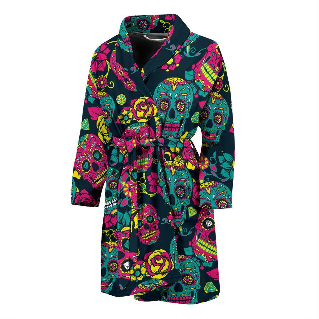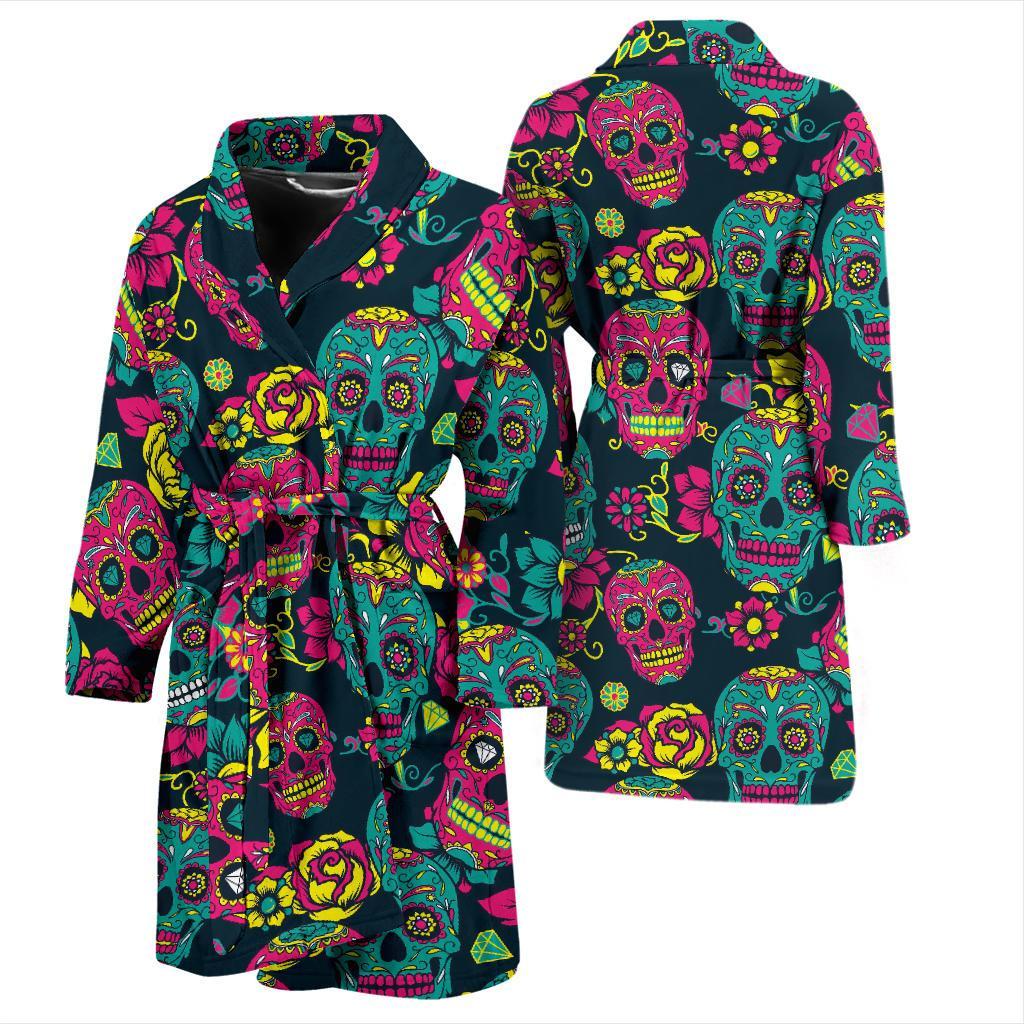Sugar Skull Girly Skeleton Floral Pattern Print Men Long Robe