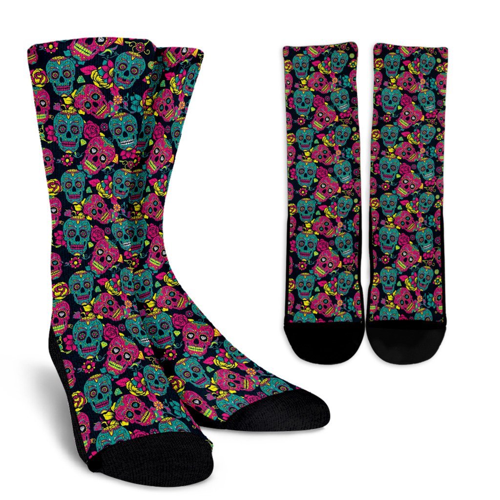 Sugar Skull Girly Skeleton Floral Pattern Print Unisex Crew Socks