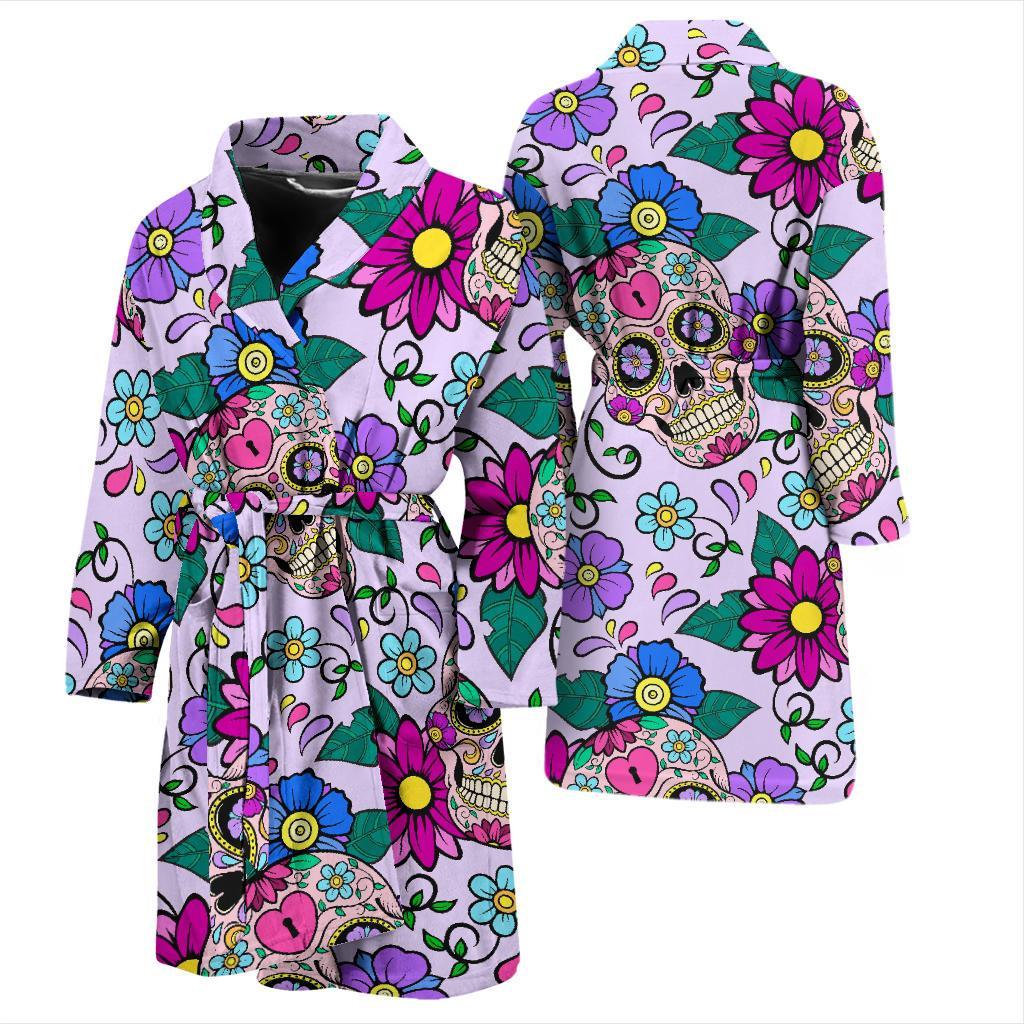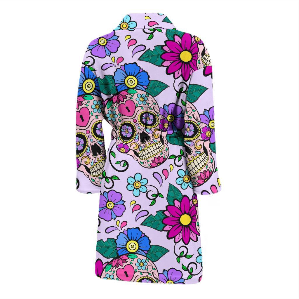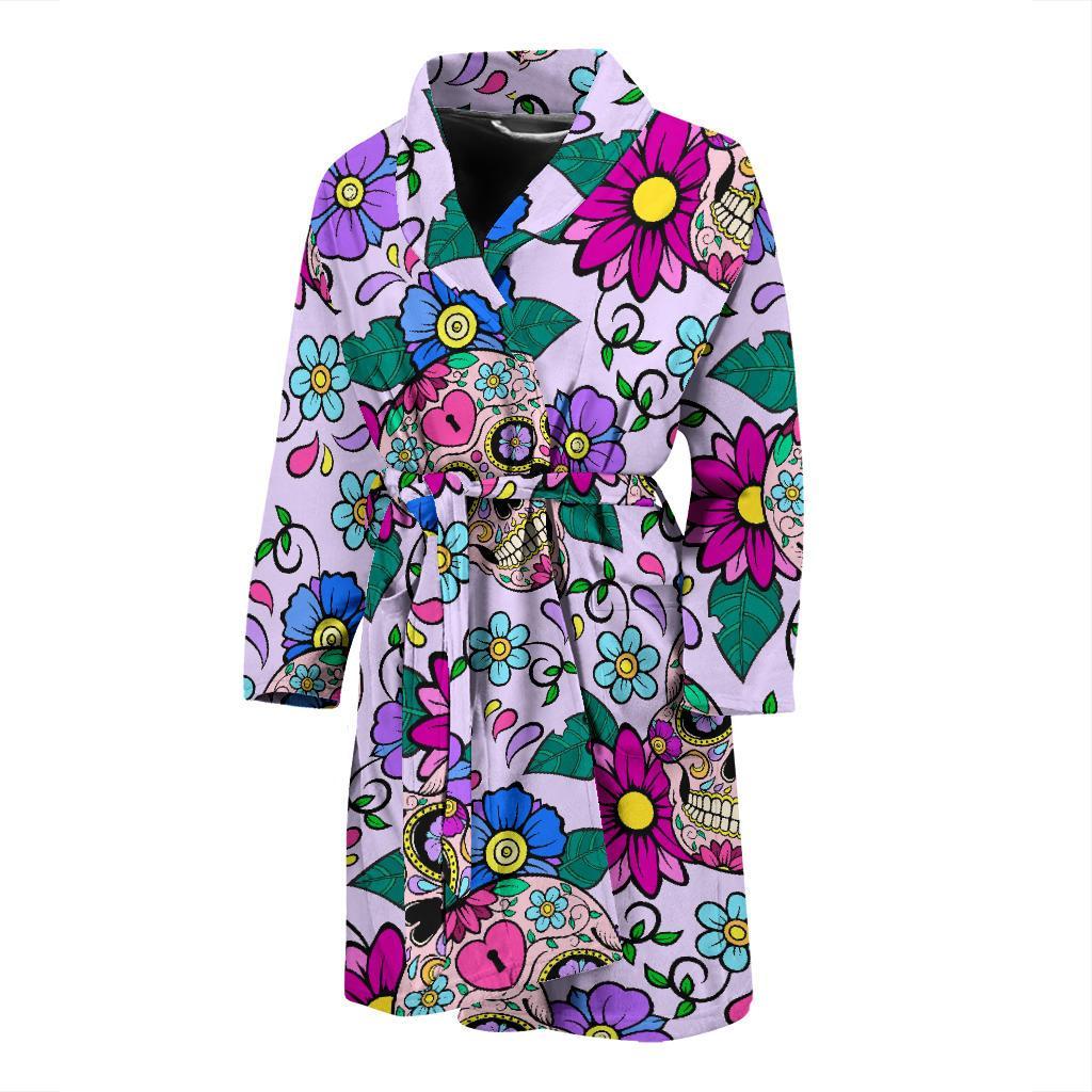 Sugar Skull Skeleton Girly Floral Pattern Print Men Long Robe