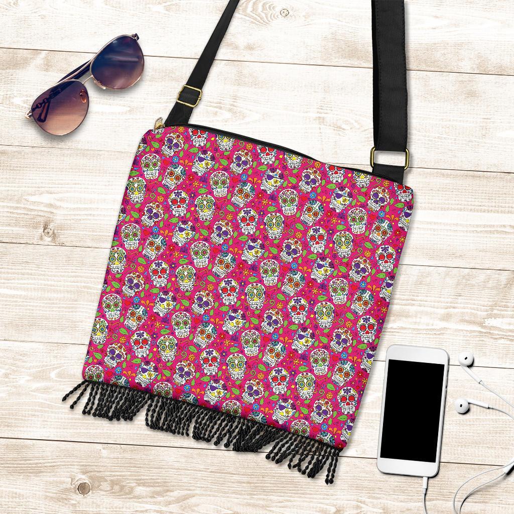 Sugar Skull Skeleton Girly Floral Pirate Pattern Print Crossbody Bags