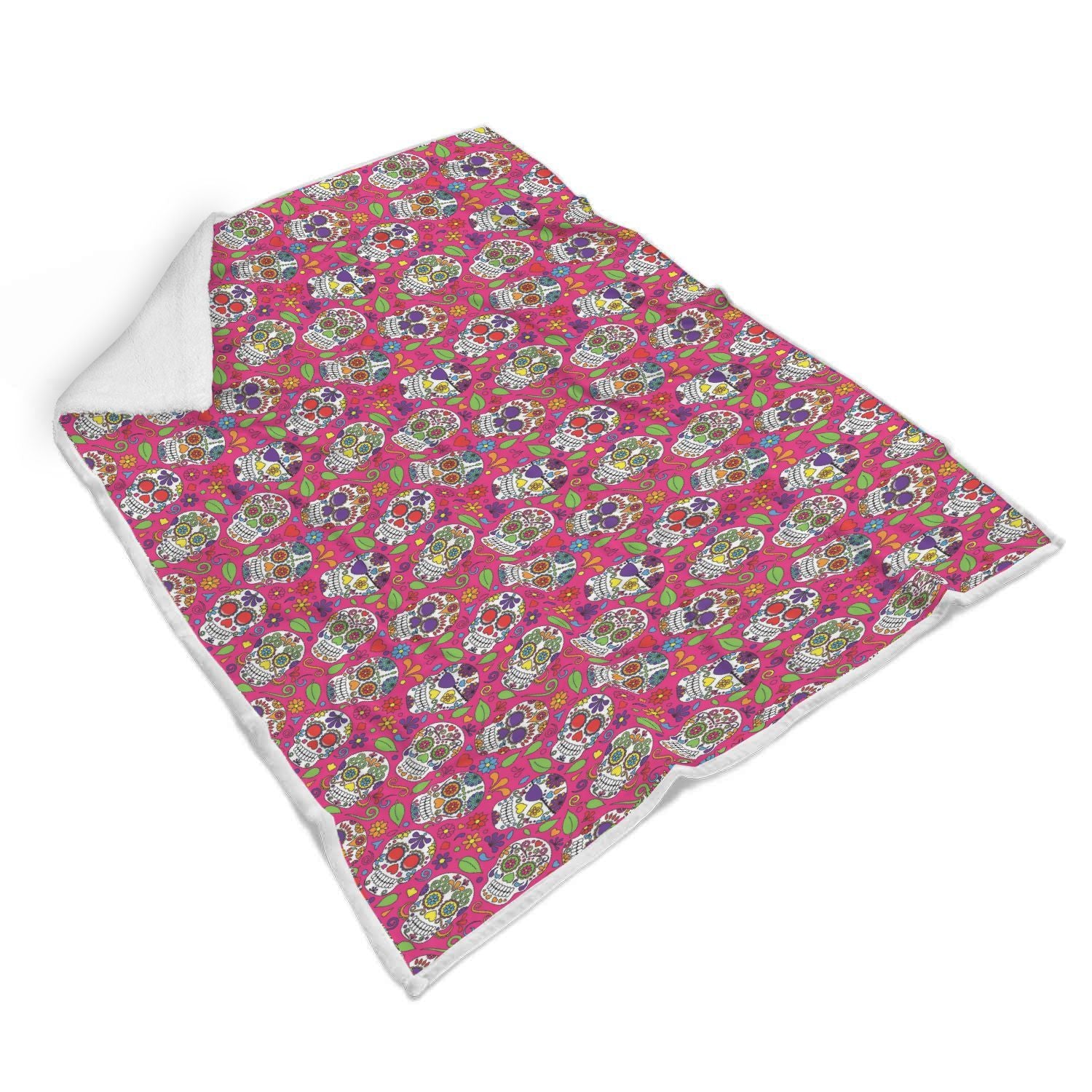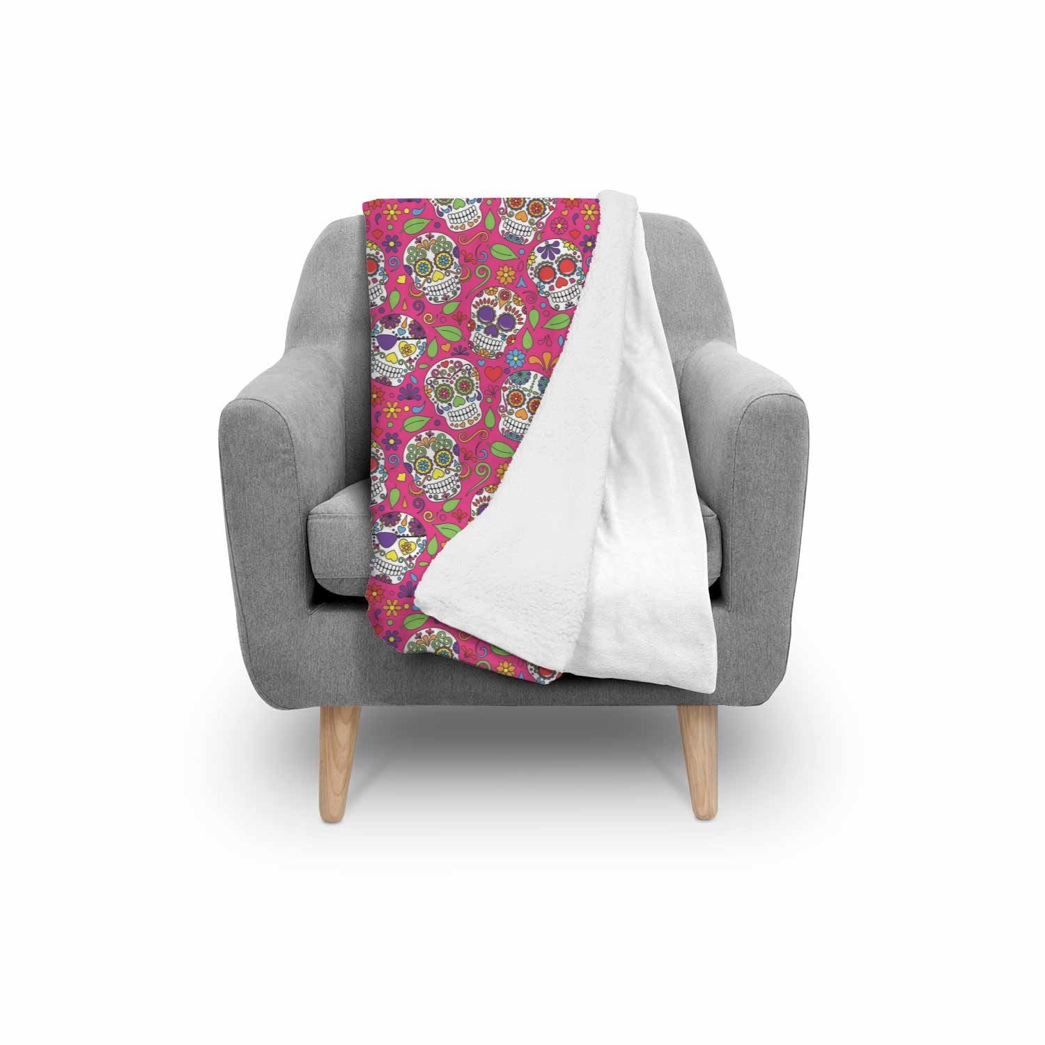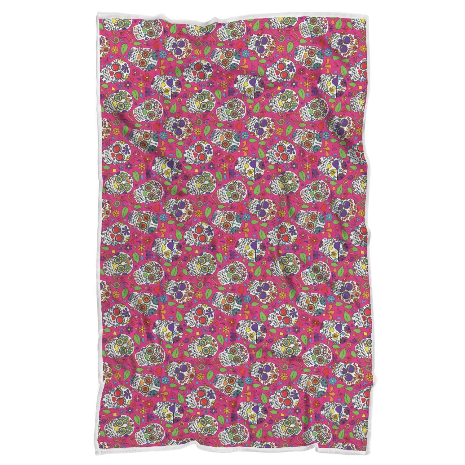 Sugar Skull Skeleton Girly Floral Pirate Pattern Print Throw Blanket