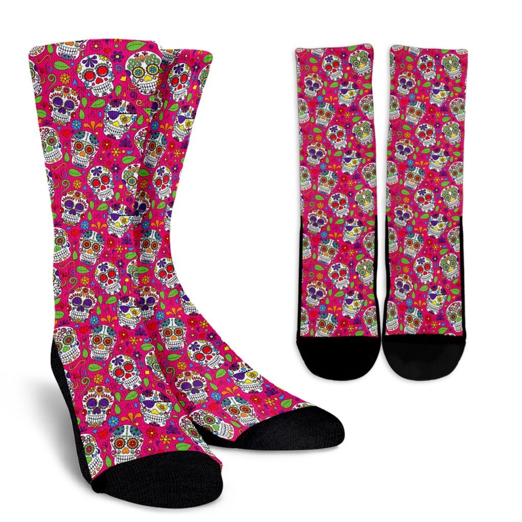 Sugar Skull Skeleton Girly Floral Pirate Pattern Print Unisex Crew Socks
