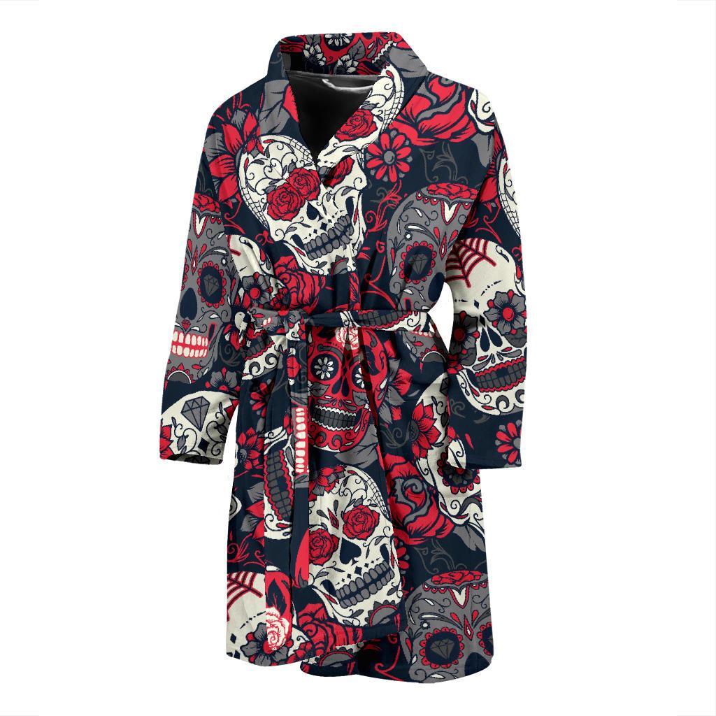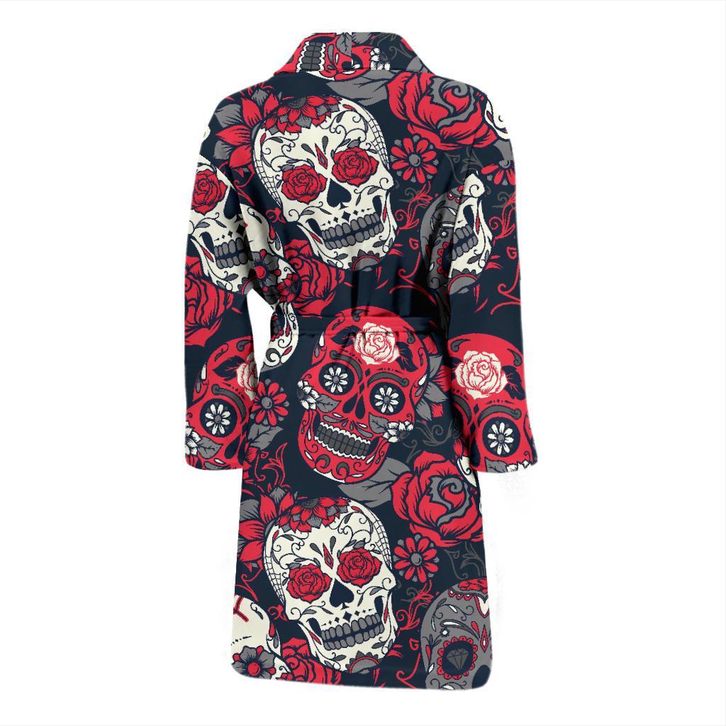 Sugar Skull Skeleton Girly Rose Floral Pattern Print Men Long Robe