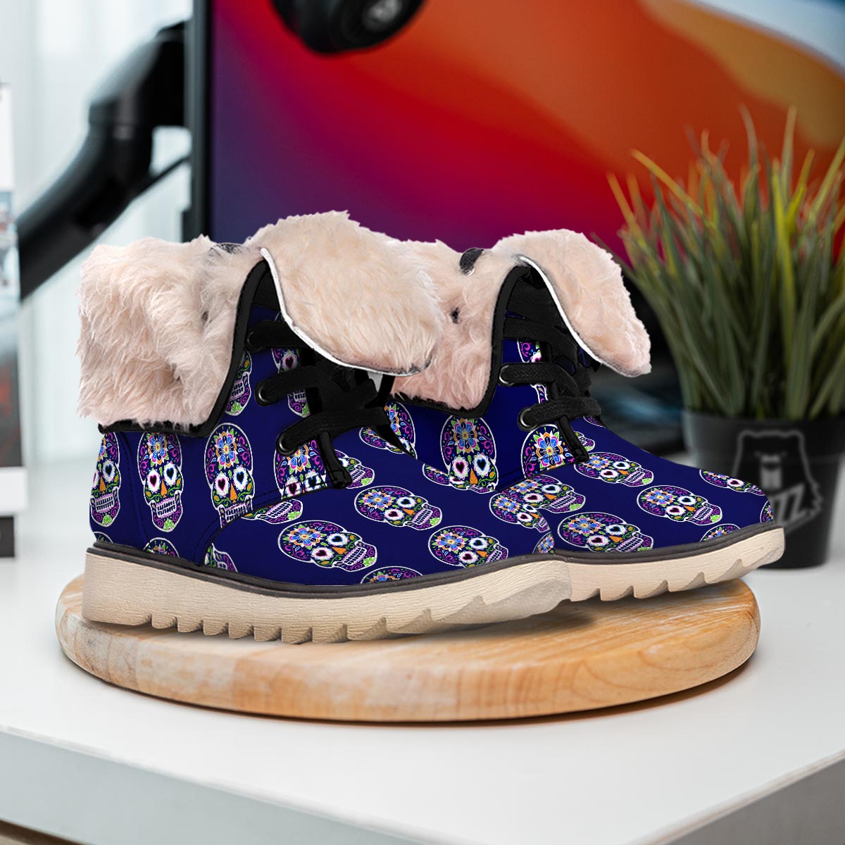 Sugar Skull Teal Pink Print Pattern Snow Boots