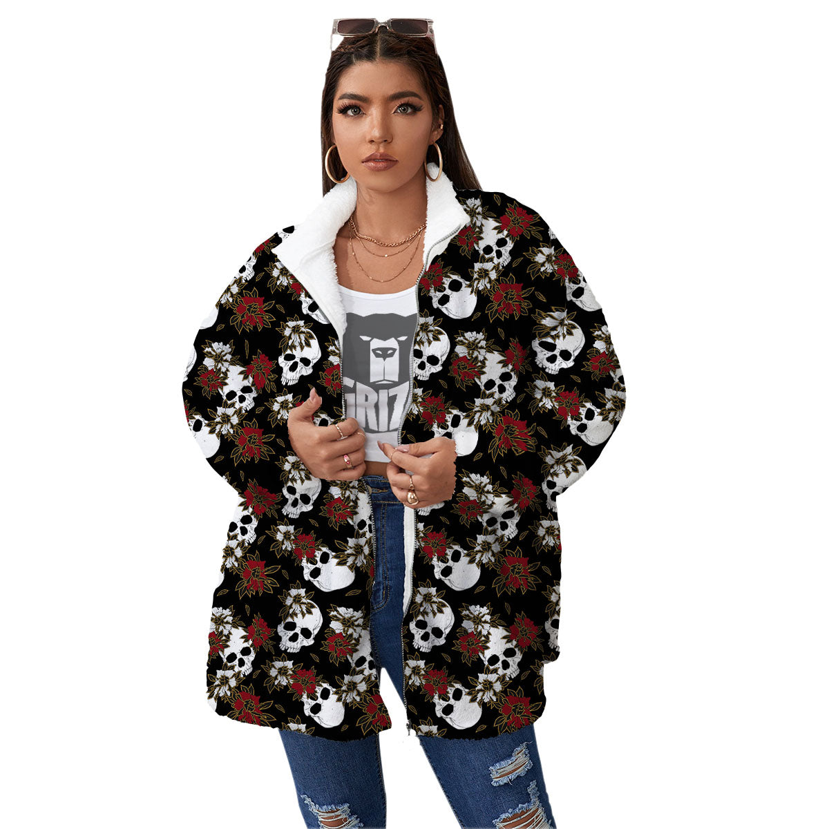 Sugar Skull White And Red Print Pattern Women's Sherpa Jacket