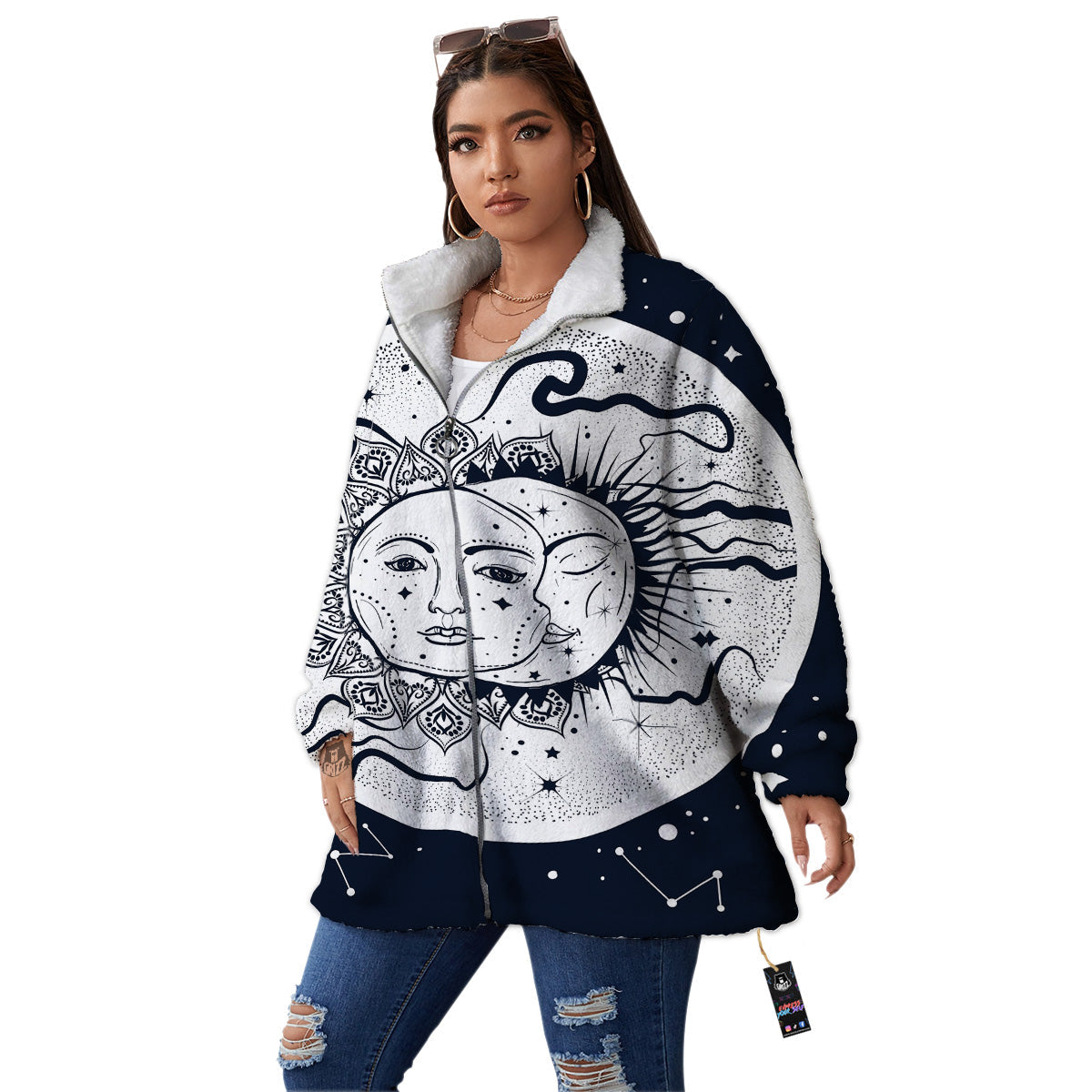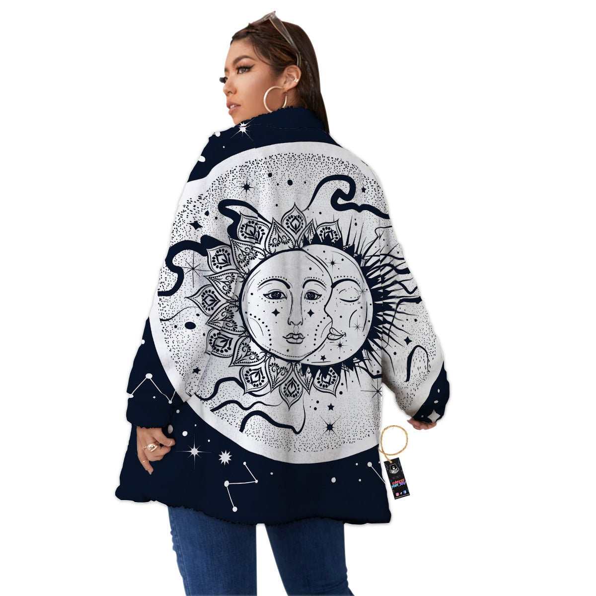 Sun And Moon Bohemian Celestial Print Women's Sherpa Jacket