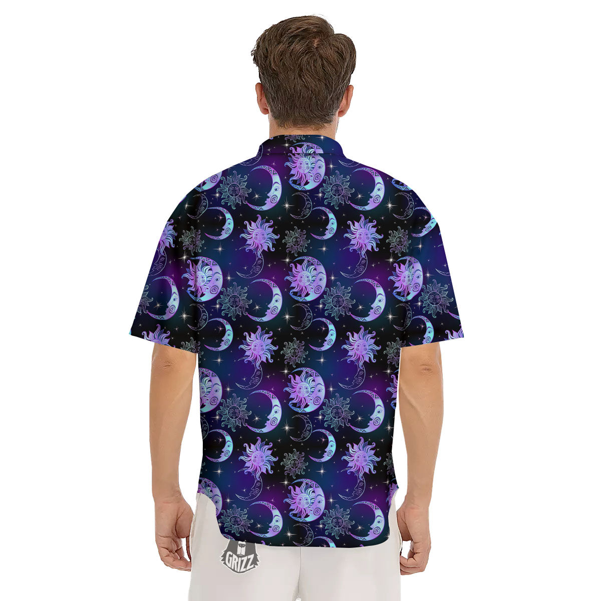 Sun And Moon Galaxy Celestial Print Men's Short Sleeve Shirts