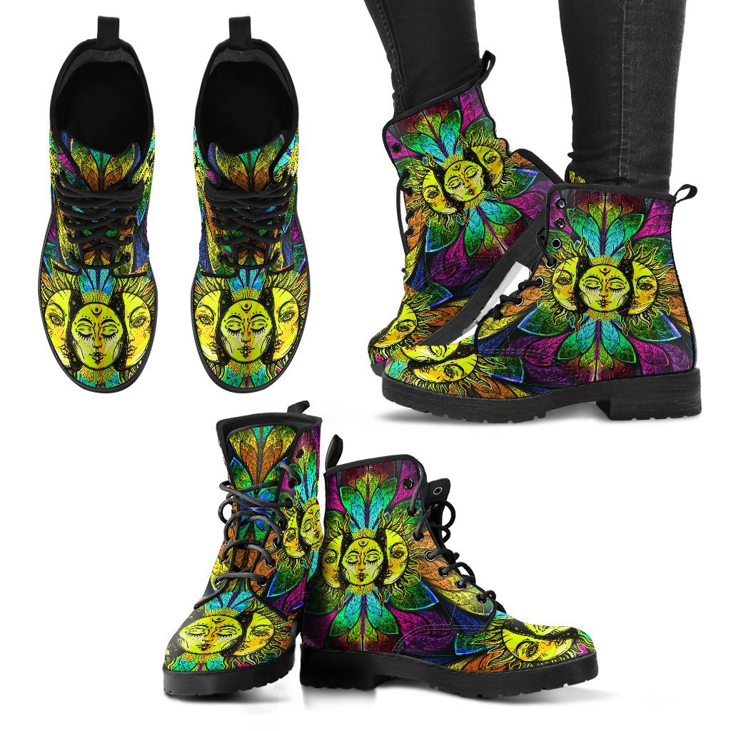 Looking for a unique boots ? Check out our Sun and Moon Handcrafted Boots at Grizzshopping. Our boots are handcrafted to the highest quality standards that custom made for you Features vegan-friendly leather with a double-sided print and rounded toe construction.