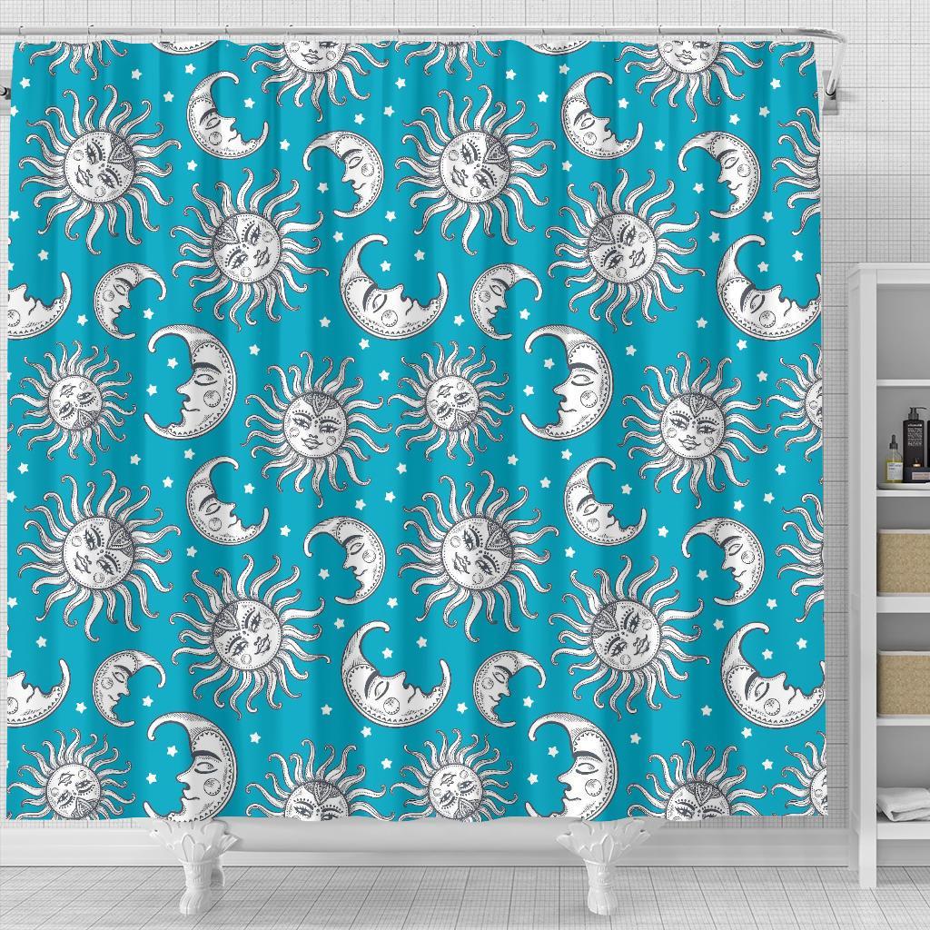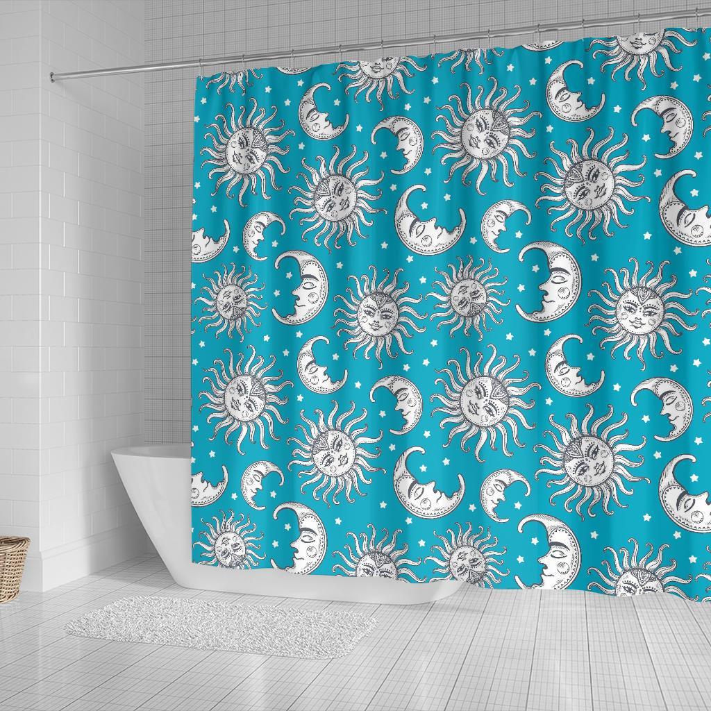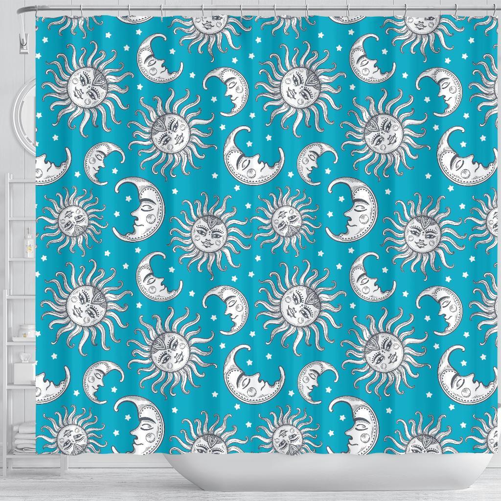 Sun Moon Blue Pattern Print Bathroom Shower Curtain