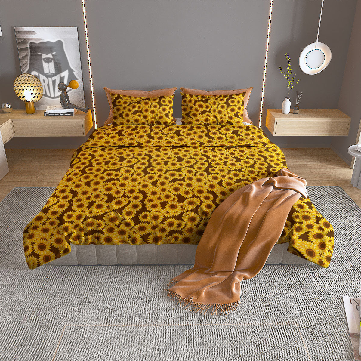 Sunflower Brown Print Pattern Duvet Cover Bedding Set