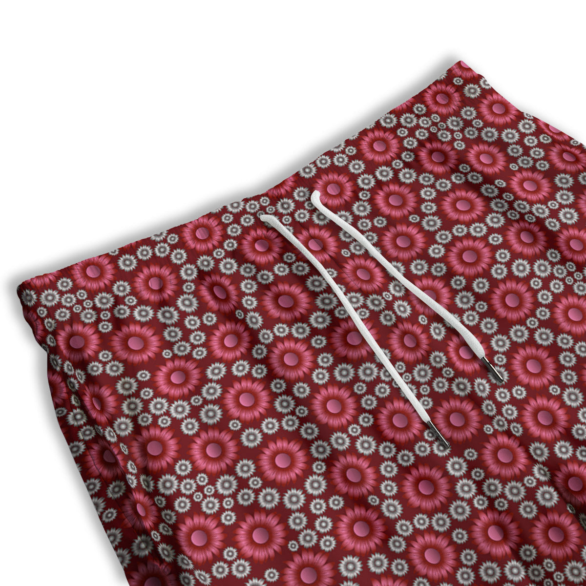 Sunflower Burgundy Print Pattern Men's Athletic Shorts
