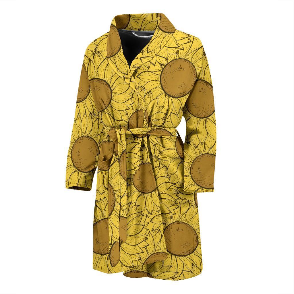 Sunflower Drawing Print Pattern Men Long Robe