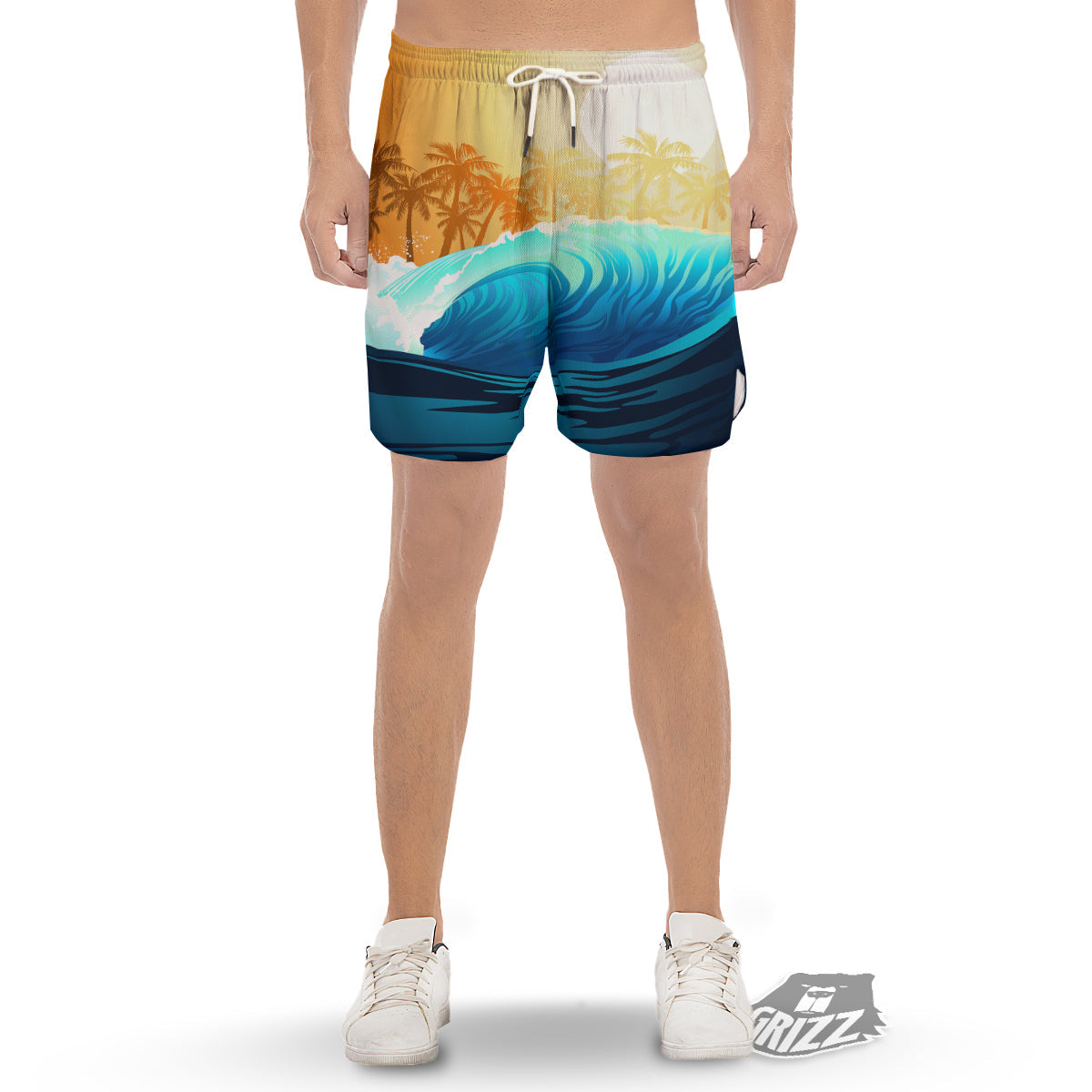 Sunrise Tropical Surfing Wave Print Men's Gym Shorts