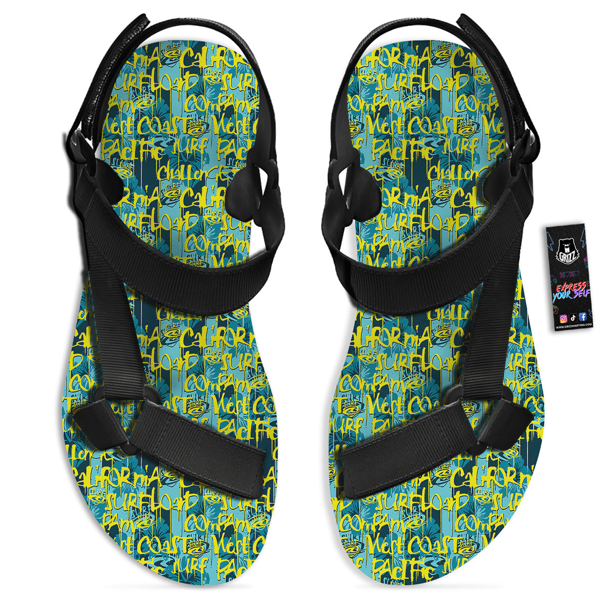 Surfing Graffiti Print Pattern Black Open Toe Sandals