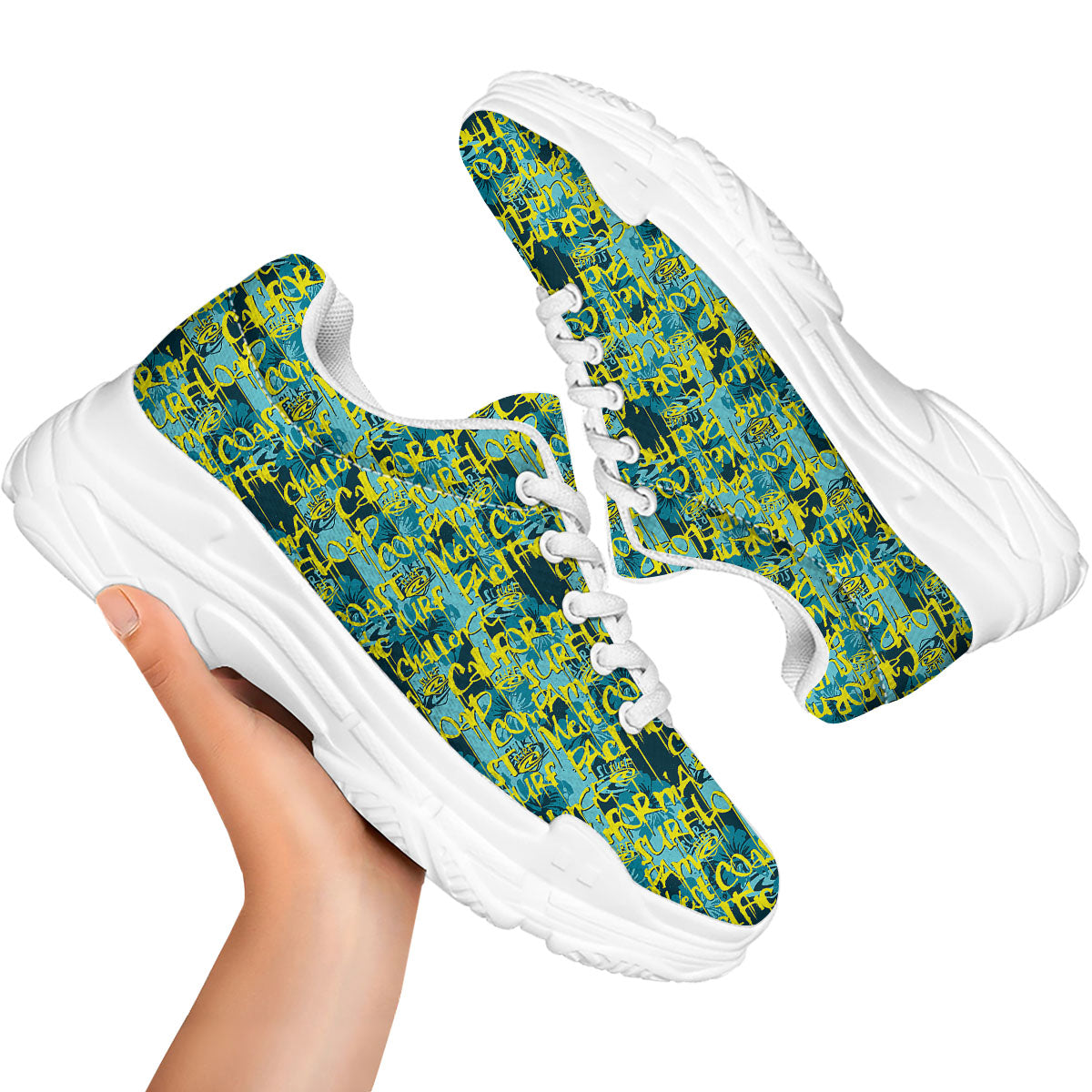 Surfing Graffiti Print Pattern White Chunky Shoes
