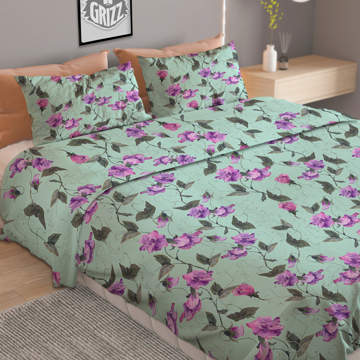 Sweet Pea Watercolor Print Pattern Duvet Cover Bedding Set