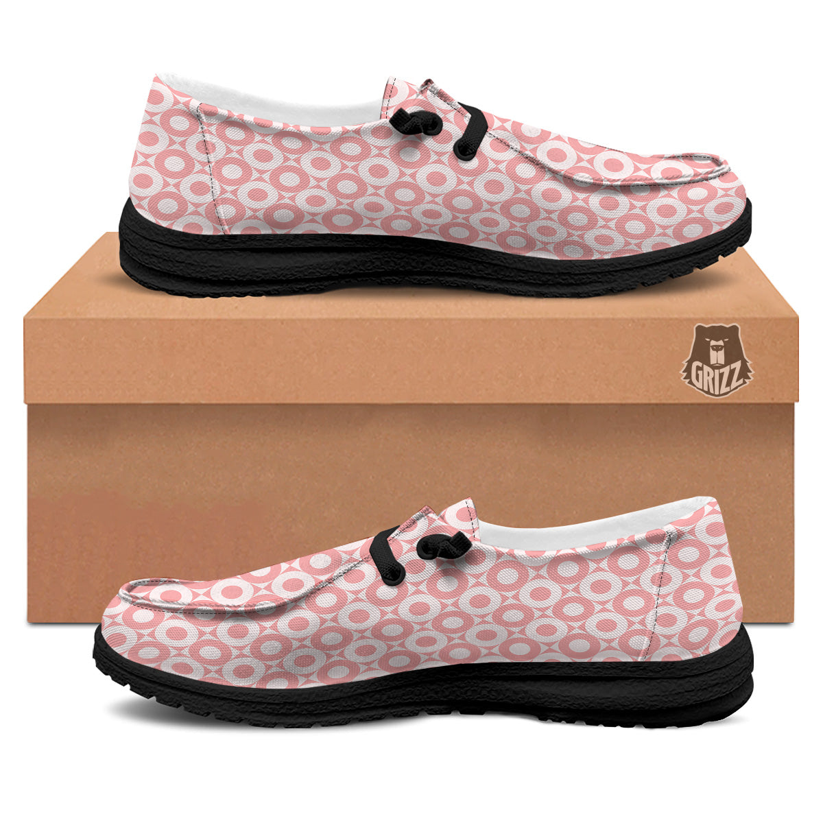 Sweet Pink Round And Square Print Pattern Black Loafers