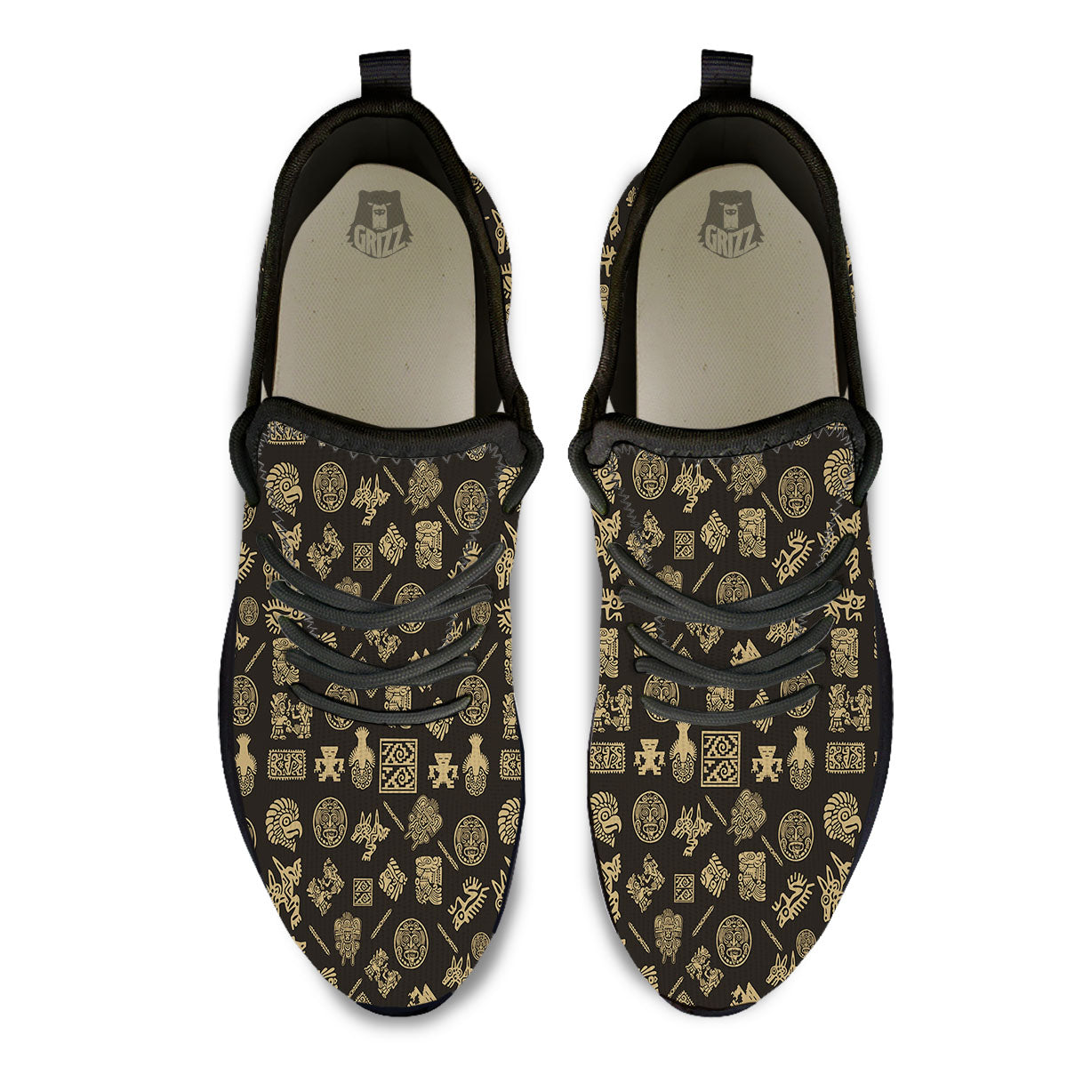 Symbol Mayan Print Pattern Black Athletic Shoes