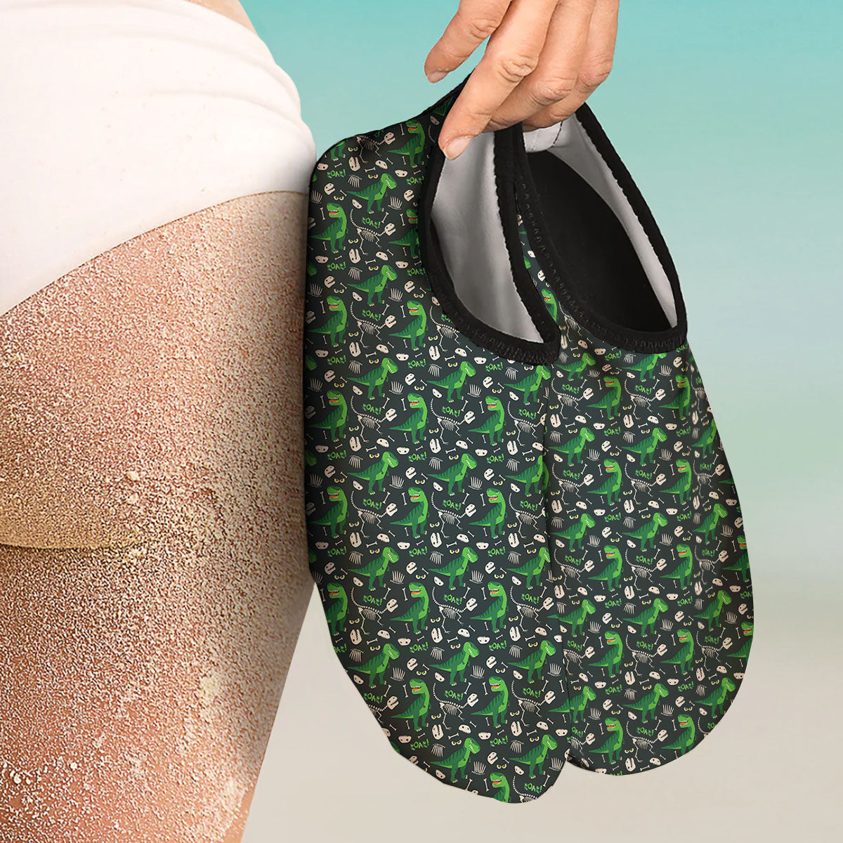 T-Rex Dinosaur Cute Green Print Pattern Water Shoes