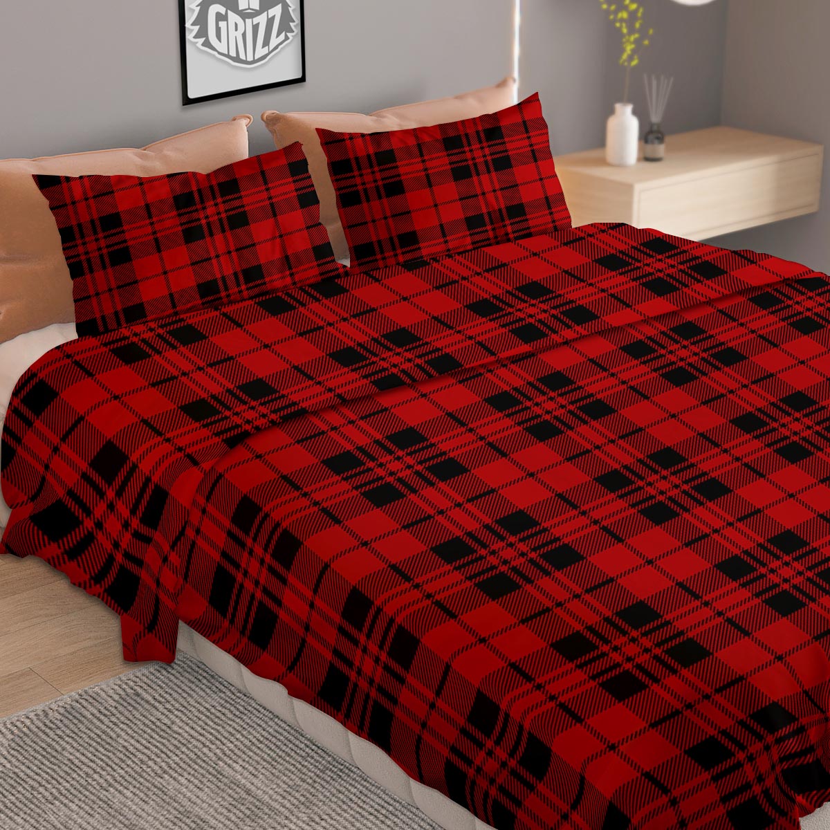 Tartan Black And Red Print Pattern Duvet Cover Bedding Set