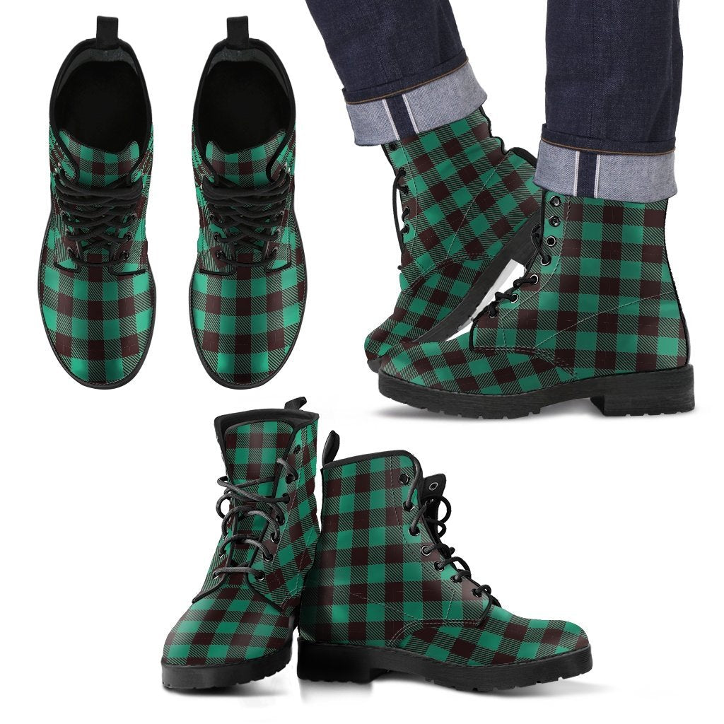 Tartan Scottish Green Plaids Men Women Leather Boots