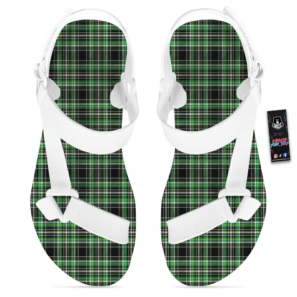 Tartan St. Patrick's Day Print Pattern White Open Toe Sandals