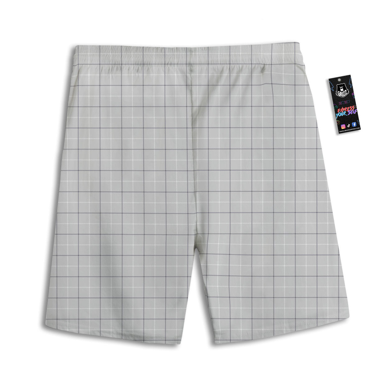 Tattersall Grey Print Pattern Men's Athletic Shorts