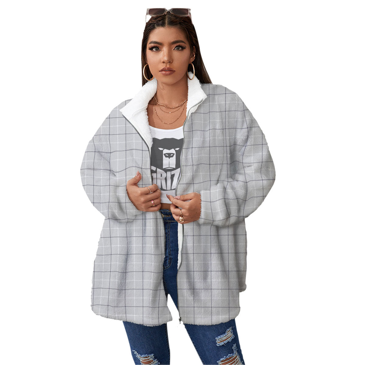 Tattersall Grey Print Pattern Women's Sherpa Jacket