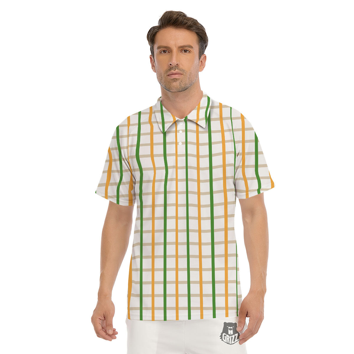 Tattersall Orange And Green Line Print Men's Golf Shirts
