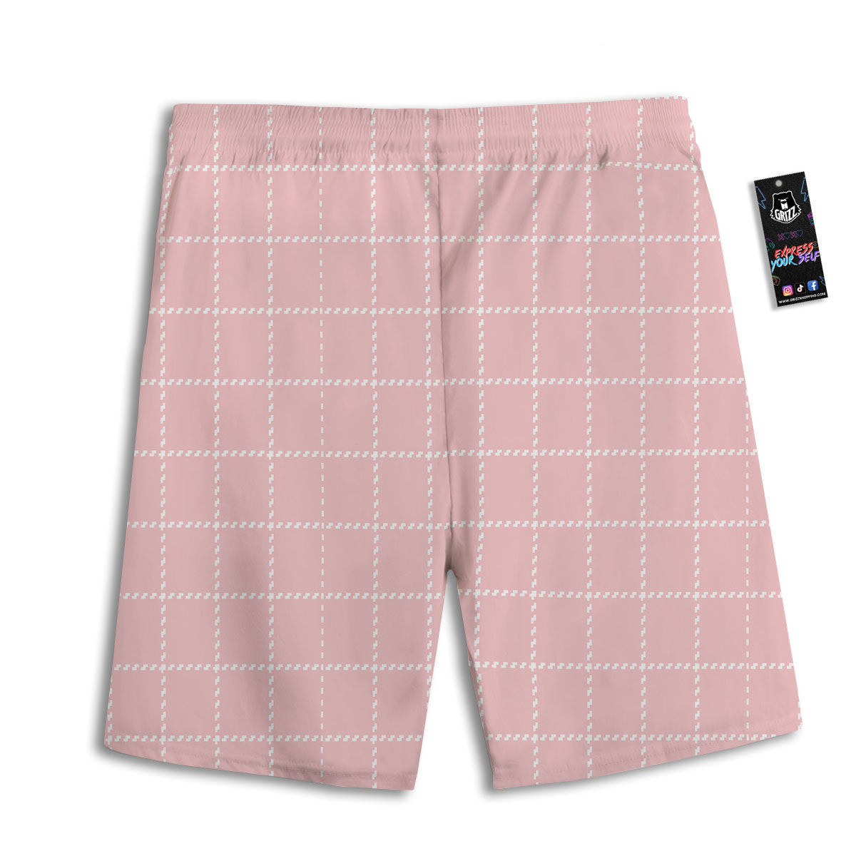 Tattersall Pastel Pink Print Pattern Men's Athletic Shorts