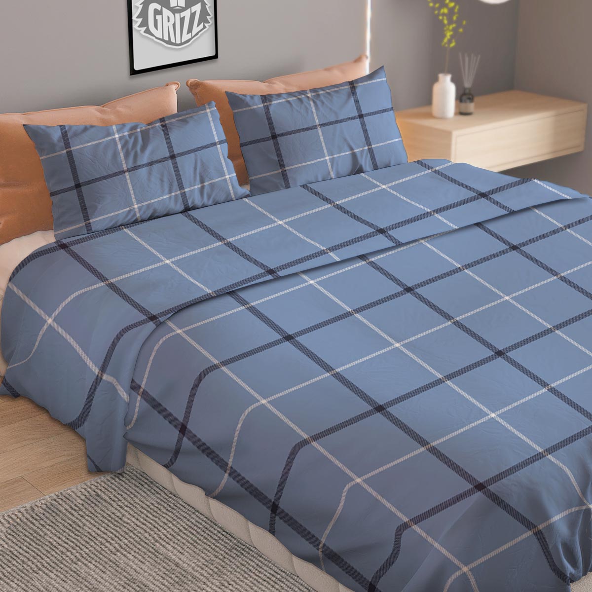 Tattersall Solf Blue Print Pattern Duvet Cover Bedding Set