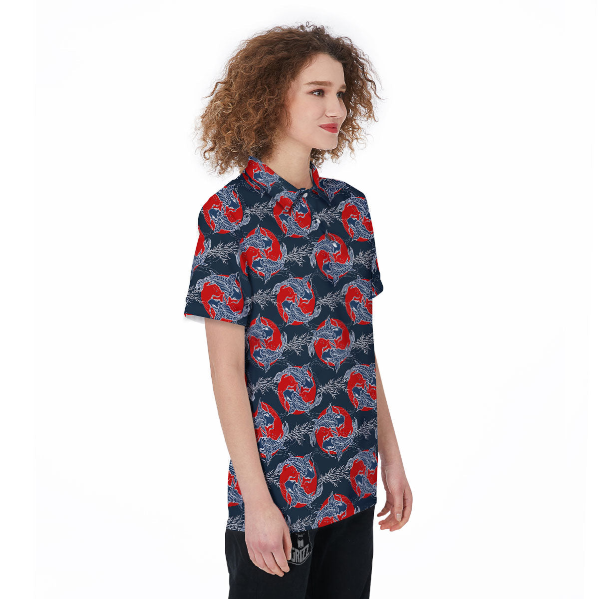 Tattoo Koi Fish Japanese Print Pattern Women's Golf Shirts