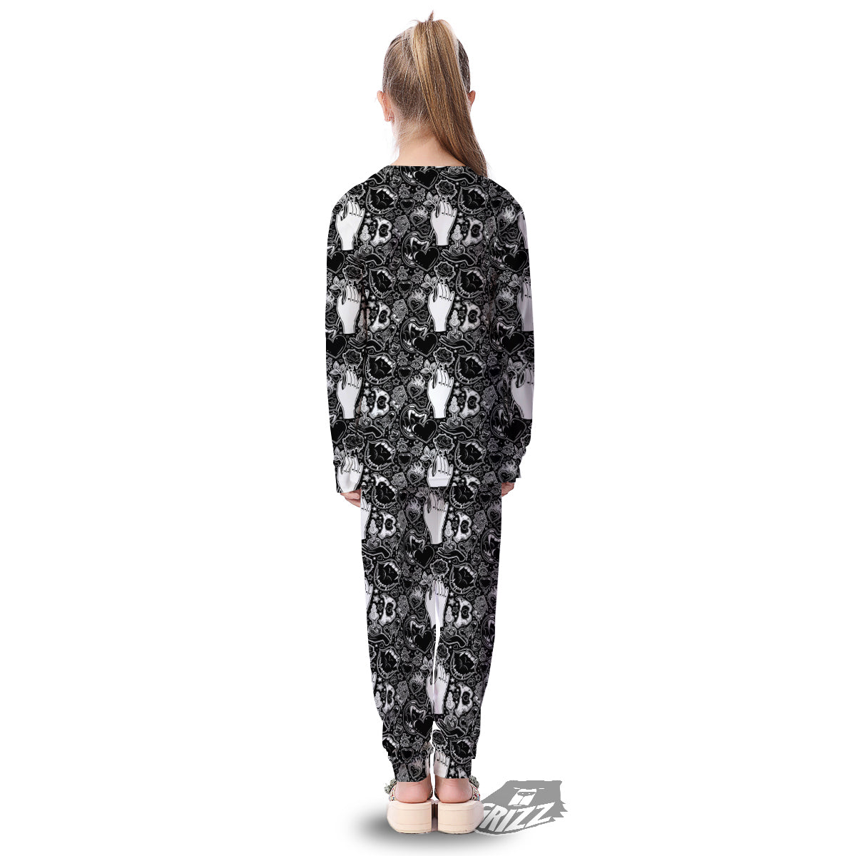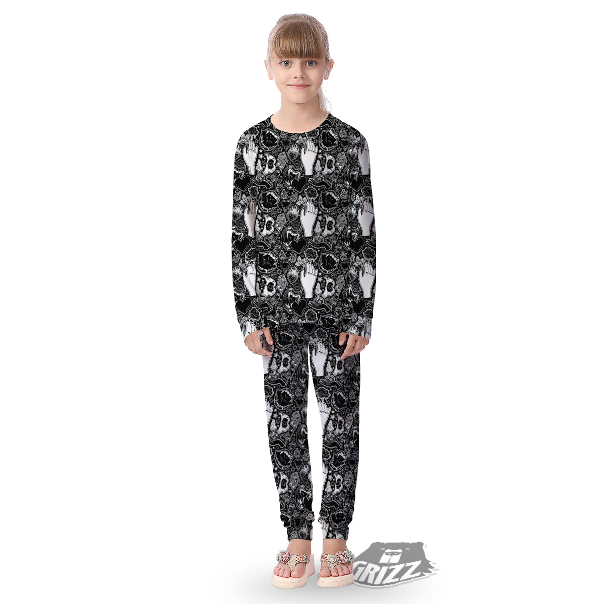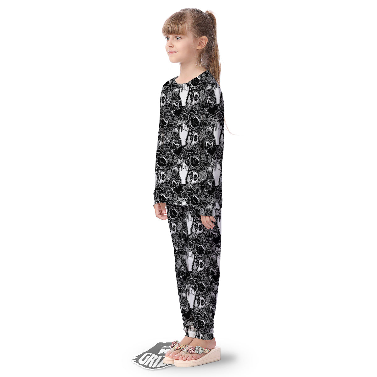Tattoo Vampire Black and White Print Pattern Kid's Pajamas