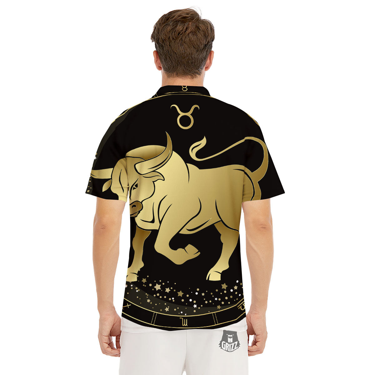 Taurus Sign Black And Gold Print Men's Golf Shirts